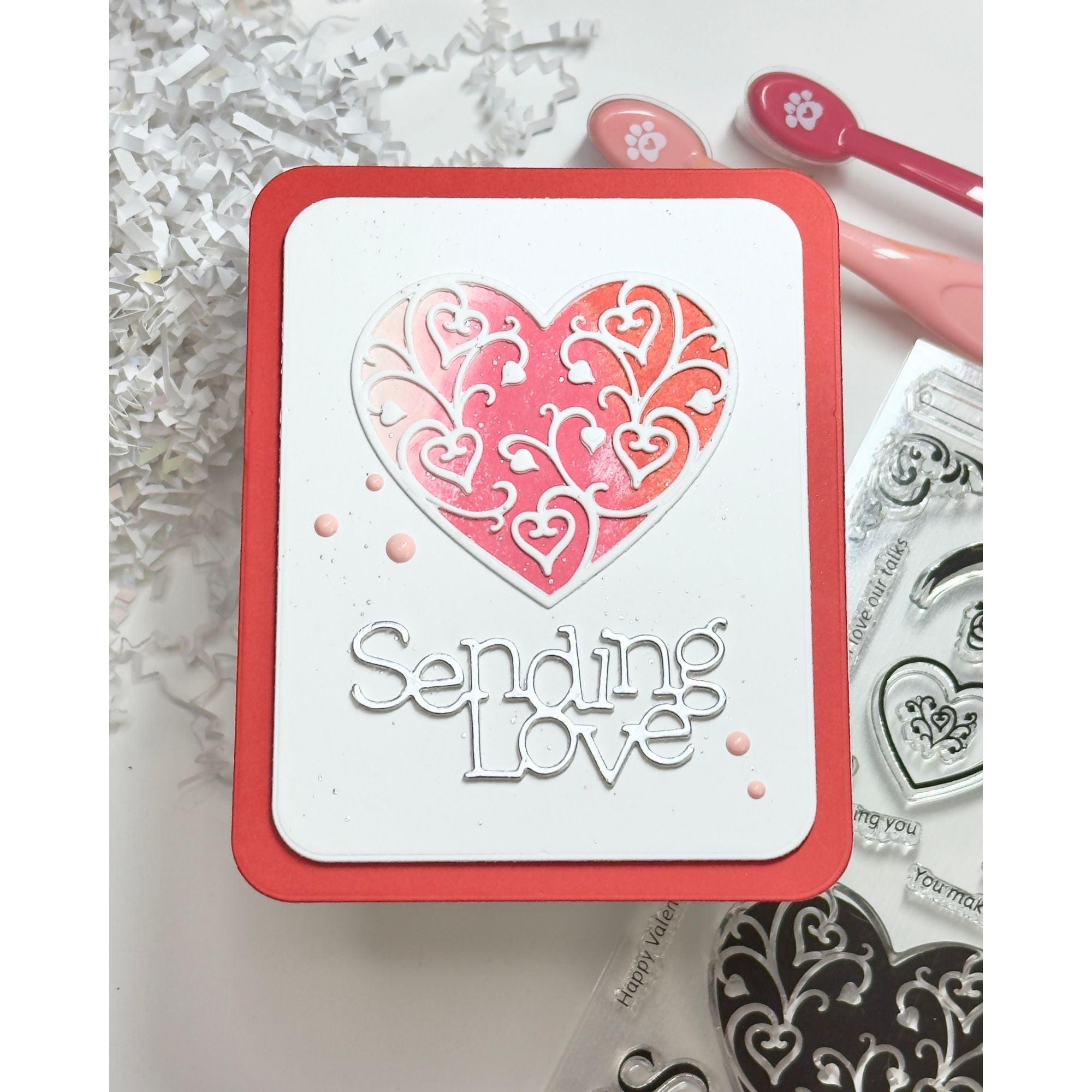 The Simon Says Stamp Hearts Aplenty die cuts an ornate heart design inspired by wrought iron details, with generous open space throughout the interior of the shape.