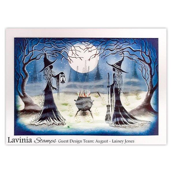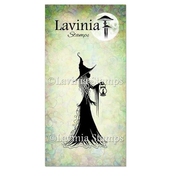 Lavinia Stamps Faba Clear Stamp features a side-view silhouette of a witch holding a lantern.