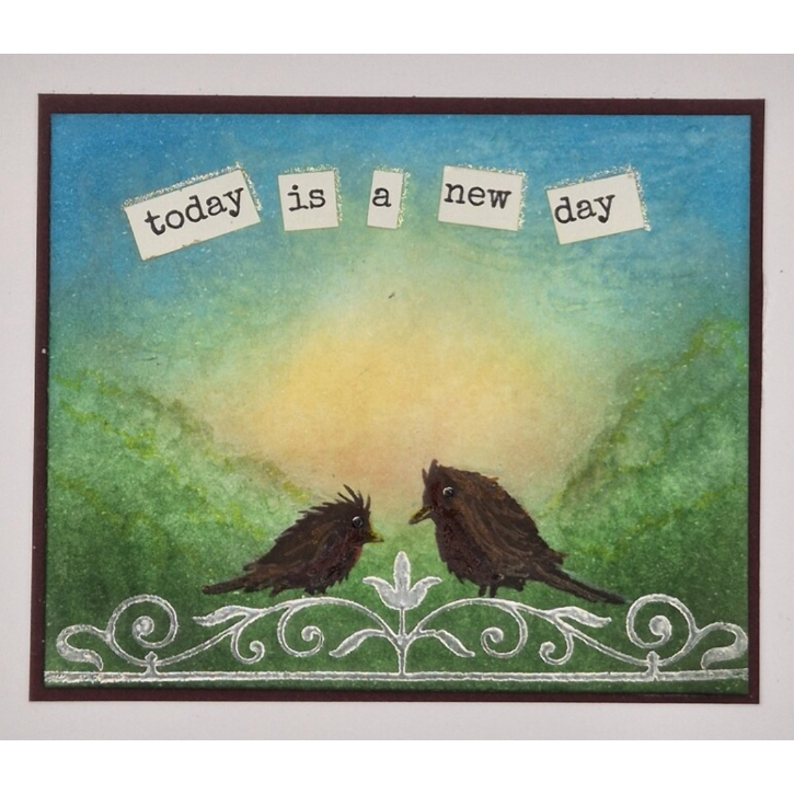 Lavinia Stamps Fledglings Clear Stamps includes two silhouette stamps of small birds facing each other.