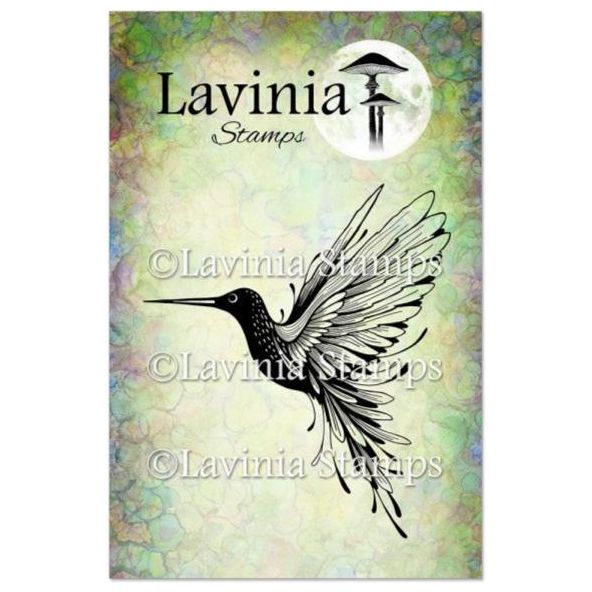 The Lavinia Hummingbird Large is a single clear stamp featuring a beautifully illustrated hummingbird. This is the larger size, with a smaller version available separately. The hummingbird showcases detailed plumage on its wings and highlights on the back of its head.