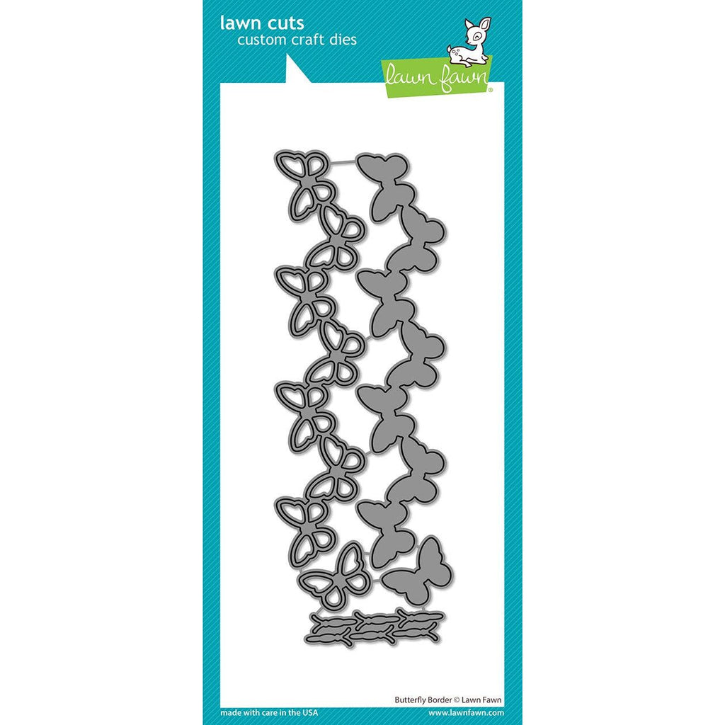 Achieve stunning and intricate borders and backgrounds with the Lawn Fawn Butterfly Border Dies. This set includes a variety of butterfly and outline designs for endless creative possibilities. Cut out the base in a different color to add a playful touch to your projects. Elevate your crafts with this beautiful and versatile die set. Approximate sizes are in inches: