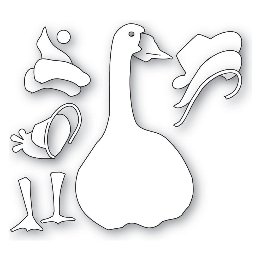 The Memory Box Happy Goose Dies from the Winter Days Collection are made from durable steel and compatible with most die-cutting machines. These versatile dies work on materials such as cardstock, felt, fabric, or shrink plastic, allowing you to cut, stencil, emboss, and create with ease. This wafer-thin die set includes three dies that cut out 12 designs, detabbed and mounted on a magnetic sheet. The goose measures approximately 1.7 x 3.6 inches, and the set includes hats measuring 0.9 x 0.8, 0.8 x 1.1, and 1 x 0.8 inches. Dress this porch goose with a variety of seasonal accessories, including a hat, bonnet, or Santa hat. It coordinates well with the Classy Goose Dies 94826, Young Goose Dies 94827, and Bundled Up Goose Dies 94829.