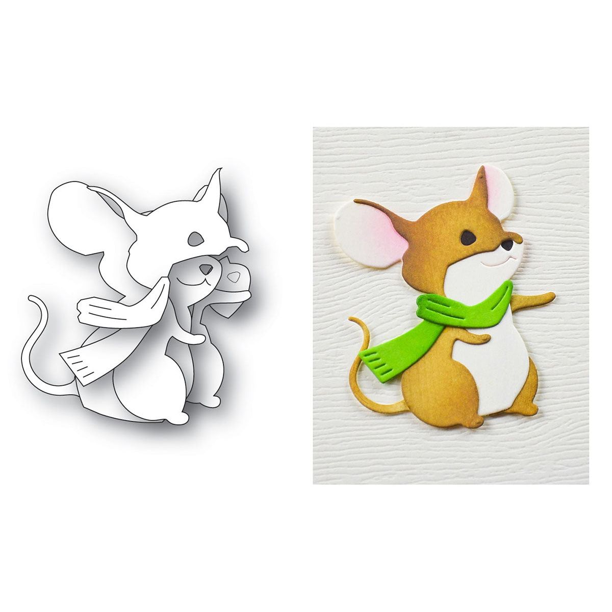 Memory Box Happy Mouse Dies, part of the Joyful Season Collection, are crafted from durable steel and compatible with most die-cutting machines. These wafer-thin dies cut cleanly through cardstock, felt, fabric, and shrink plastic. The set includes 3 dies that cut 7 designs, featuring an adorable mouse with an optional scarf. Approximate sizes: mouse 1.8 x 2 inches, scarf 1.1 x 0.9 inches. Works well with Memory Box Buster Mouse 94908, Village Mouse 94909, Milo Mouse 94900, and Town Mouse 94898.