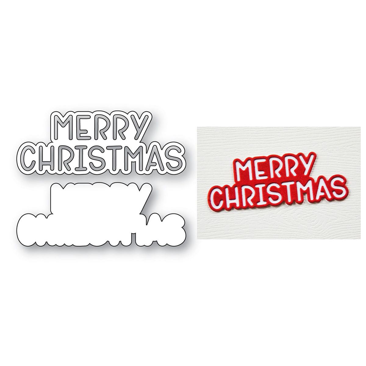 Memory Box Merry Christmas Marker Script Dies, part of the Joyful Season Collection, are crafted from durable steel and compatible with most die-cutting machines. These wafer-thin dies cut smoothly through cardstock, felt, fabric, and shrink plastic. The set includes 2 dies: the phrase “Merry Christmas” in a bold uppercase font and a coordinating shadow layer for added dimension. Each design measures approximately 2.7 x 1 inches.