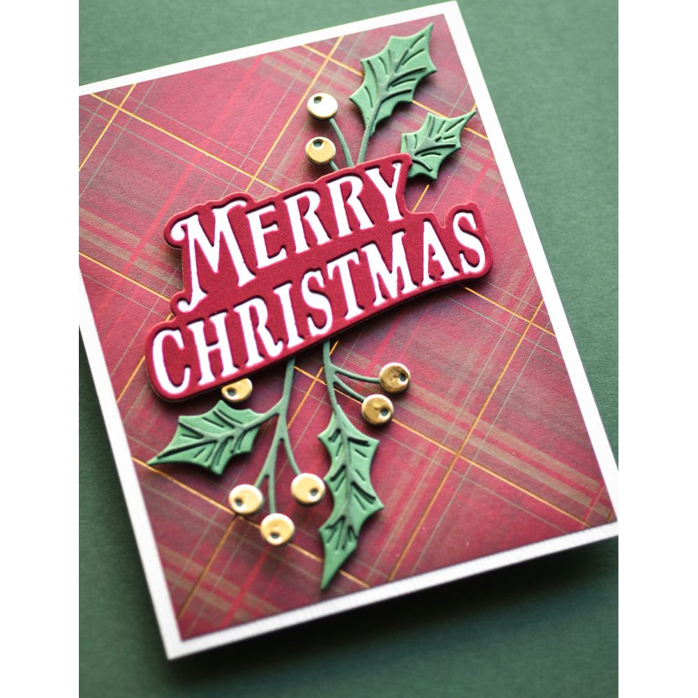 Memory Box Merry Christmas Wave Dies are made from durable steel and compatible with most die-cutting machines on the market. You can use these dies on various materials, including cardstock, felt, fabric, or shrink plastic. They offer the flexibility to cut, stencil, emboss, and unleash creativity. From the Yuletide Collection, this set includes two wafer-thin dies, each approximately 3.3 x 2 inches. The design features a cut-out "Merry Christmas" with a background die for adding a different color.