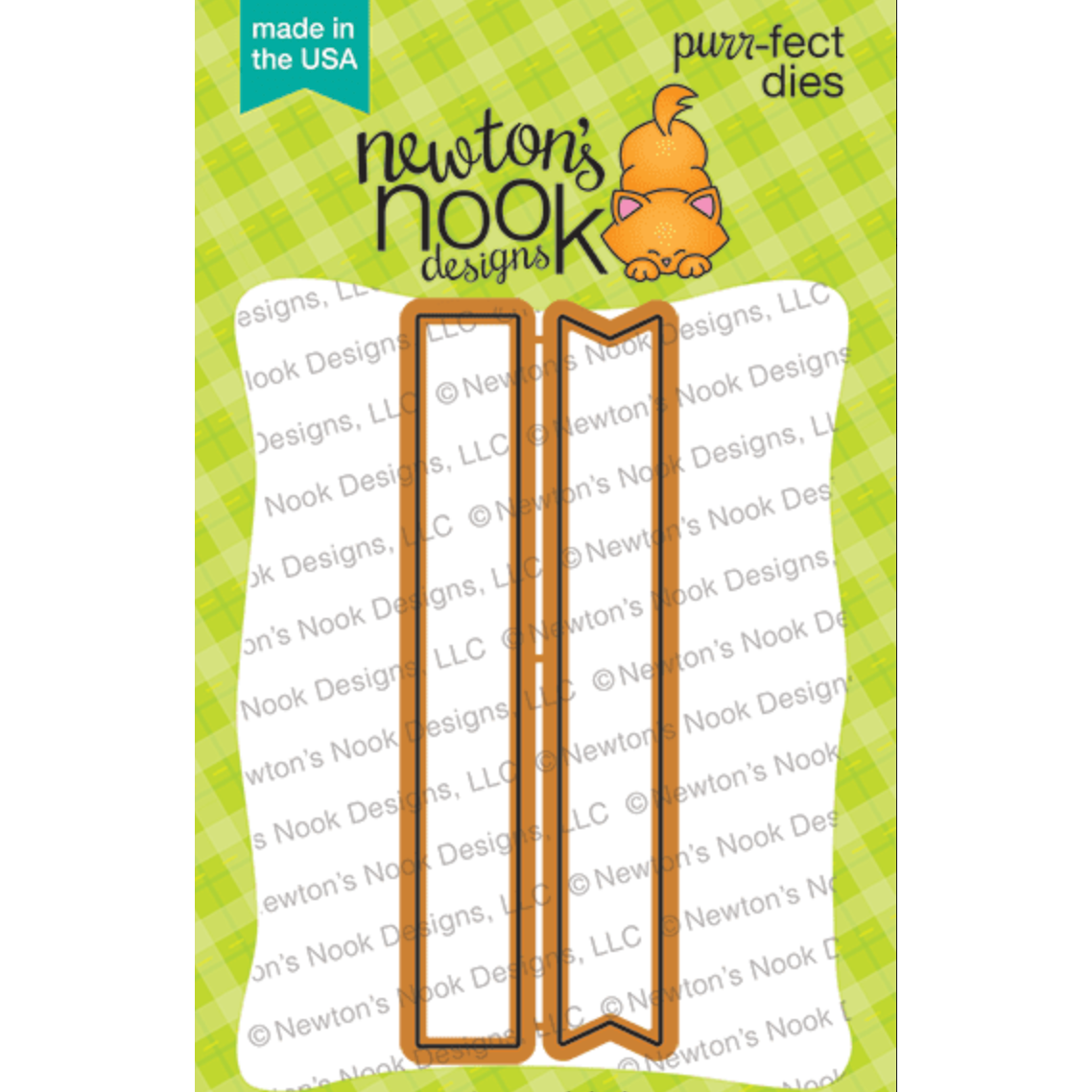 Introducing the versatile Newton's Nook Banner Duo Dies! This set includes one rectangle banner and one fishtail banner, both perfectly sized for adding sentiments to your cards. Designed to coordinate seamlessly with Newton's Nook Bright Sentiments Hot Foil Plate, all the phrases from the plate will fit perfectly inside these die-cut banners.