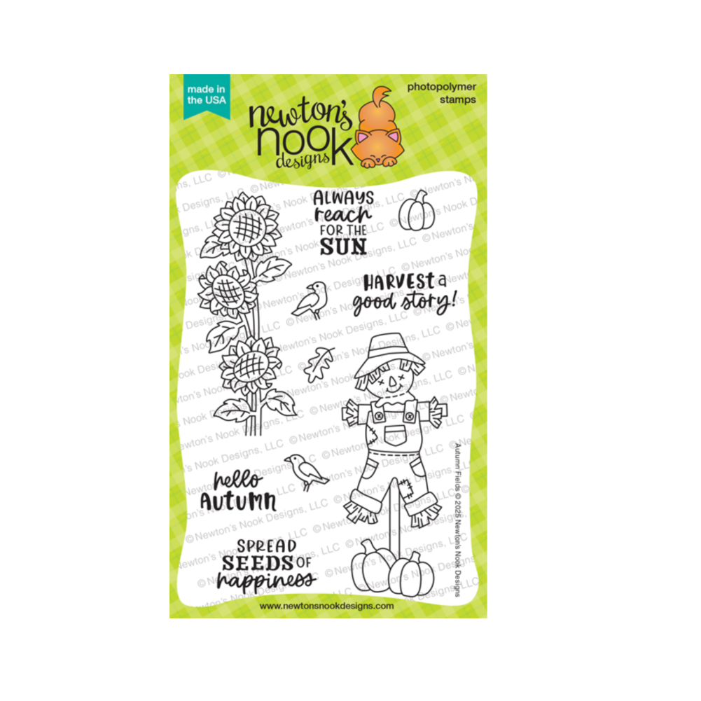 Newton’s Nook Designs Autumn Fields Clear Stamps bring cozy autumn charm to your projects with sweet scarecrow and sunflower images that make any seasonal card a delight. Pair the images with your favorite patterned paper or inky background for warm, rustic designs. Sized to also fit both of Newton’s Nook bookmark die sets, these stamps are perfect for creating bookmarks, cards, and tags. This 4 x 6 inch photopolymer stamp set includes 10 stamps: 6 images and 4 sentiments.