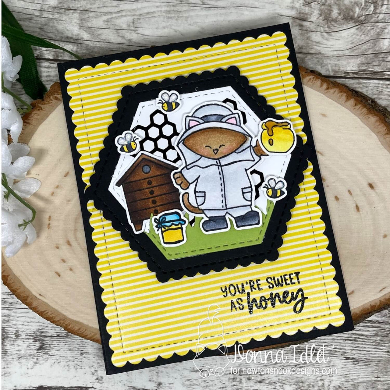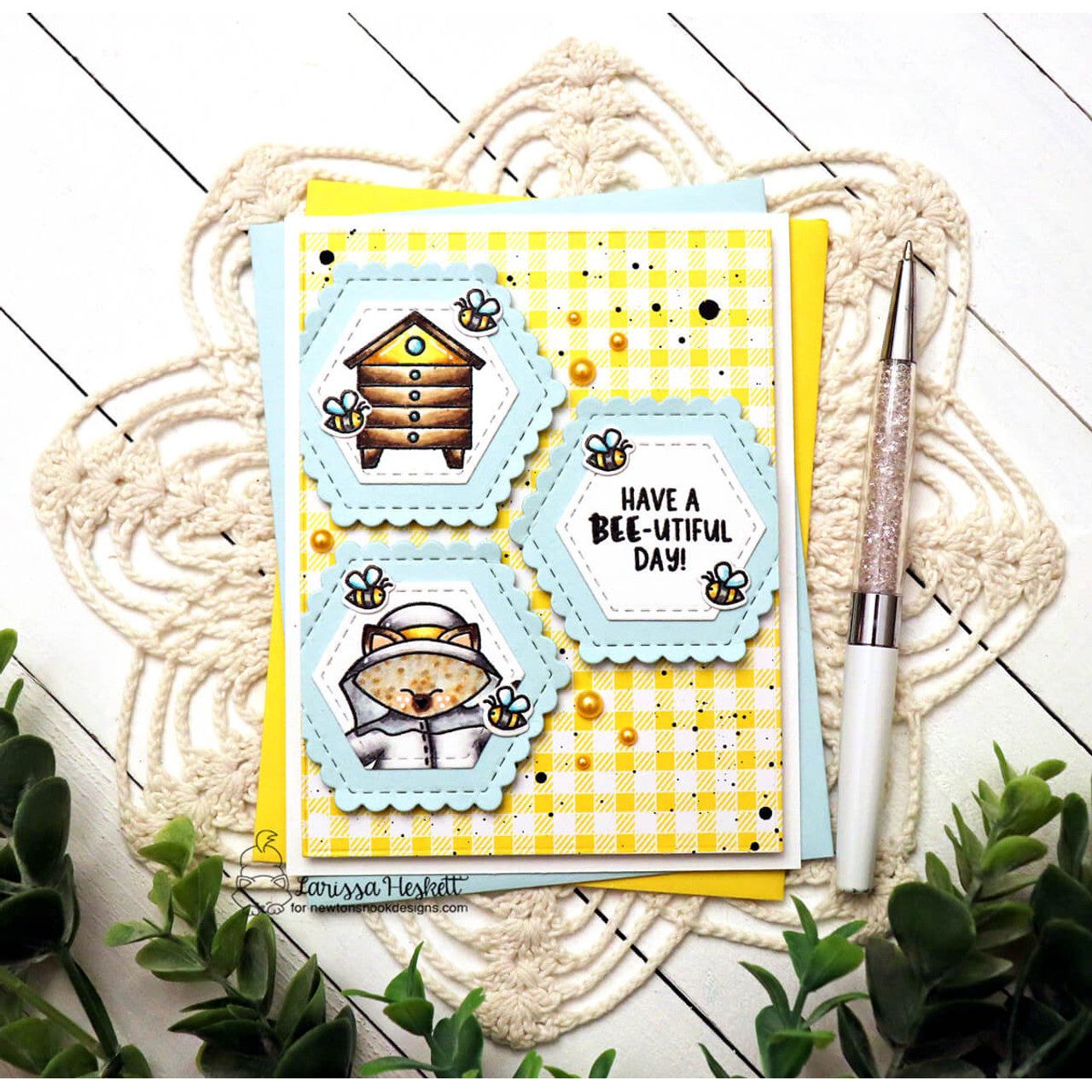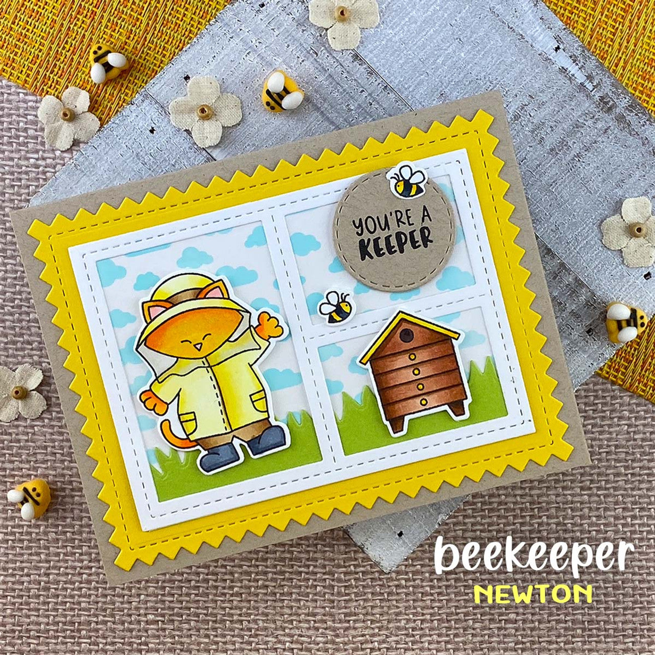 This 4x4 inch photopolymer stamp set includes 10 stamps: 6 images and 4 sentiments. It also coordinates with the Beekeeper Newton Die Set.