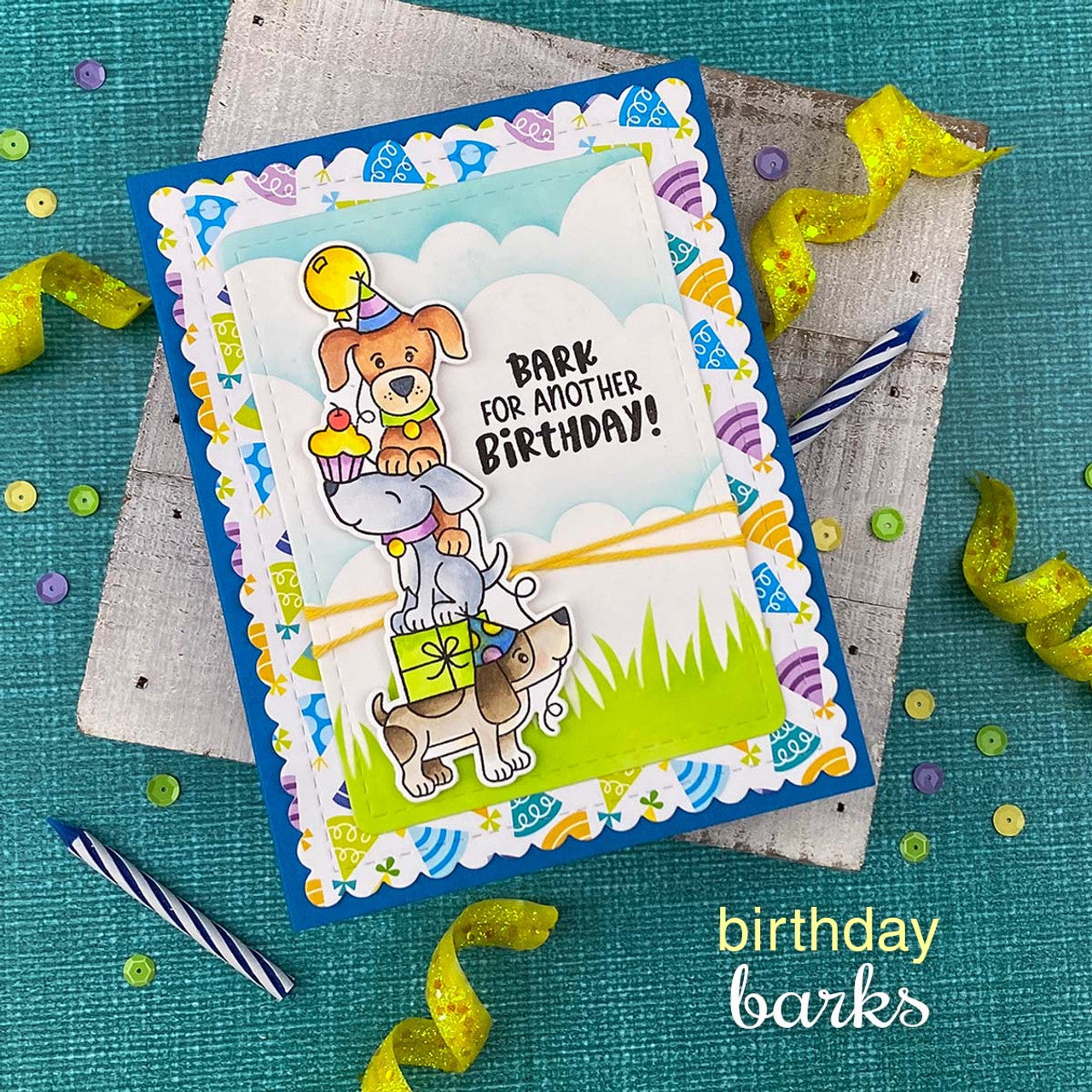 Crafted from high-quality photopolymer, this stamp set includes a total of 9 stamps, consisting of 6 images and 3 sentiments. The images depict dogs with cake, as well as dogs with a gift, balloon, and cupcake, showcasing their excitement and delight during birthday celebrations.