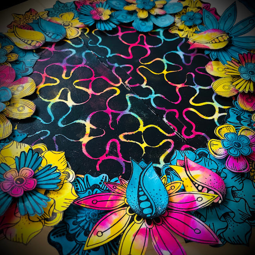 Use with paint, Grunge Paste, paint sprays, crayons, pastels, pens, chalks, etc. Wonderful on paper, canvas, chipboard and much more. This top-quality, strong plastic stencil is a full background of open-spaced retro flowers. Stencil is approximately 6.5 x 9.5 inches.