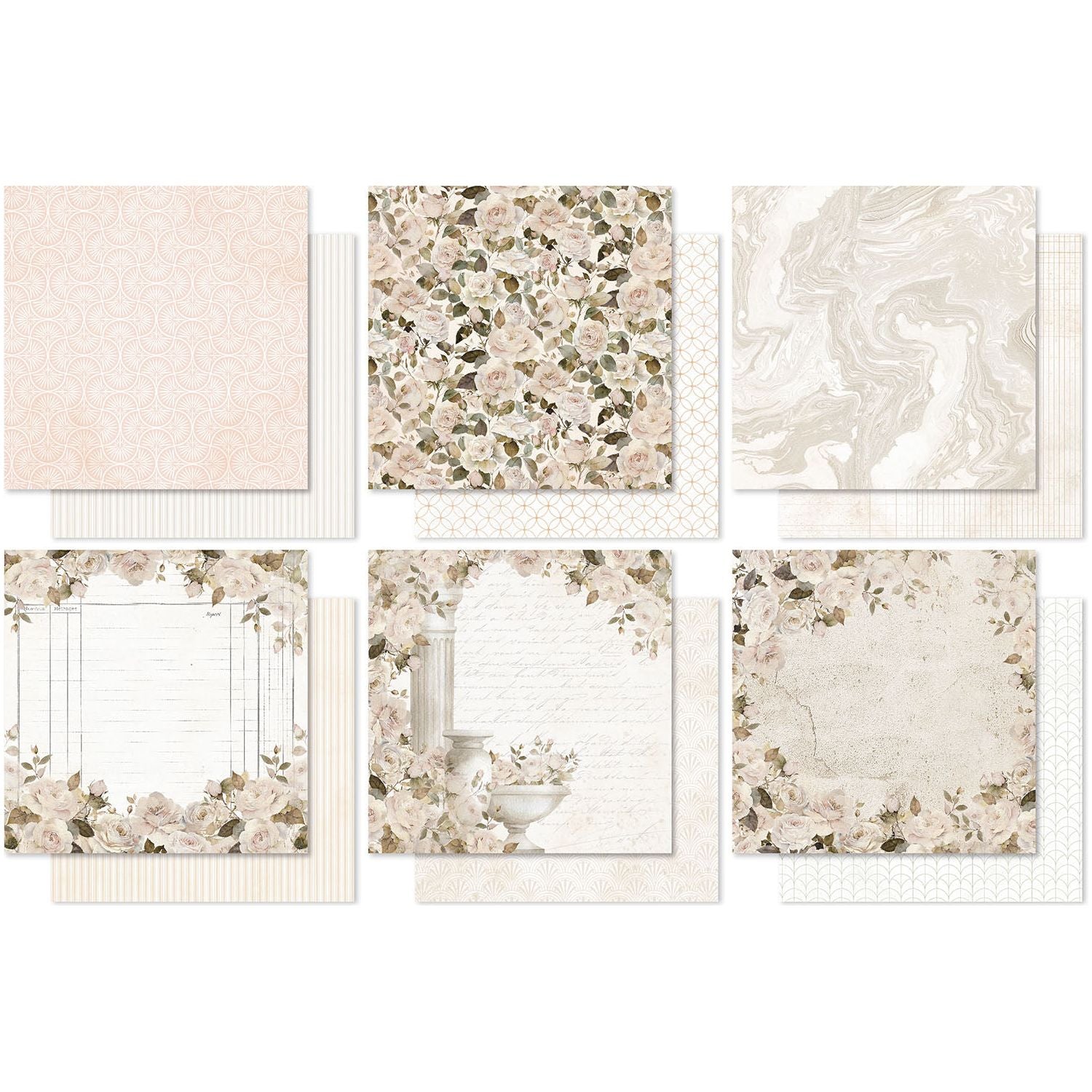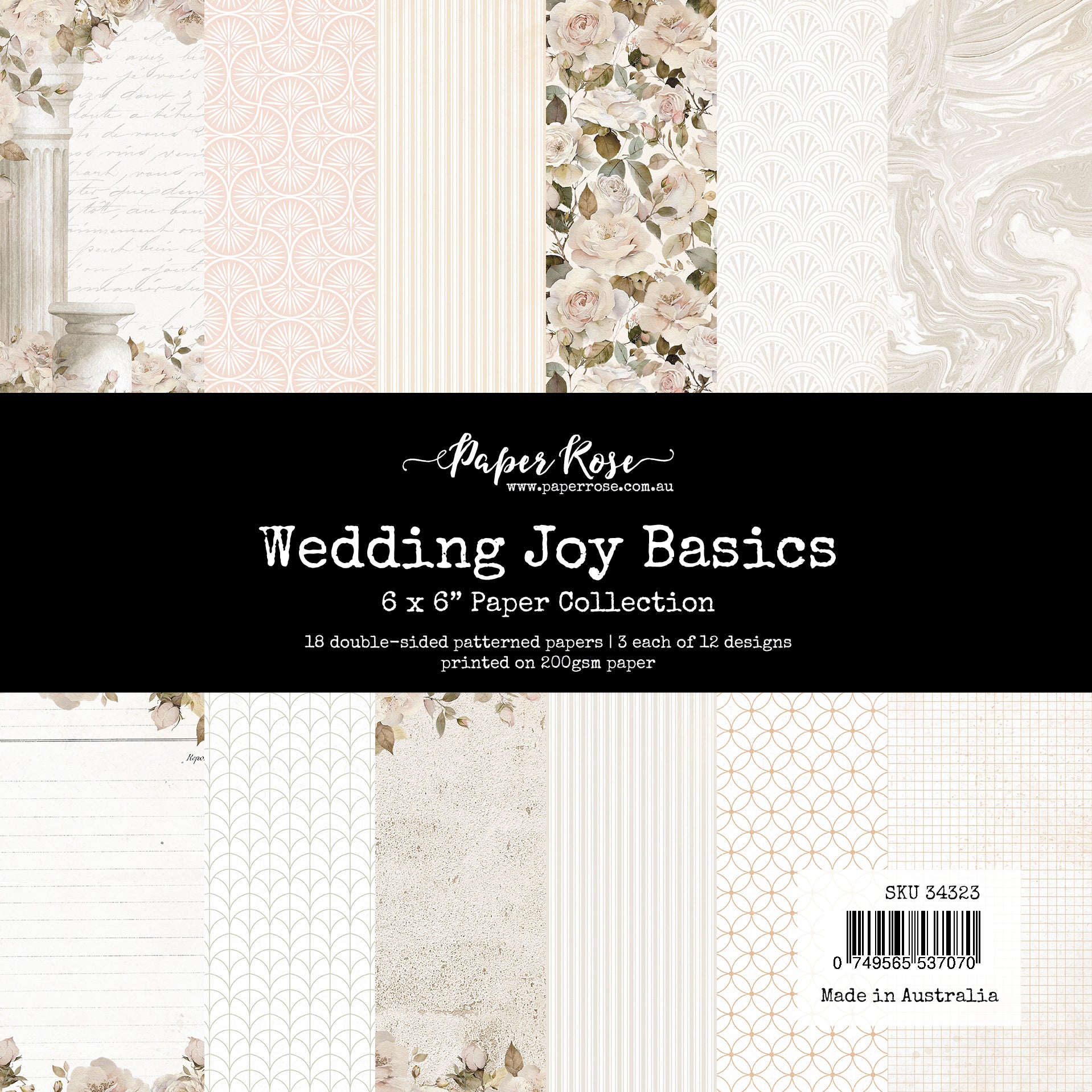 Paper Rose Wedding Joy Basics Paper is a charming and versatile addition to your crafting collection. This 6 x 6-inch paper pack includes 18 double-sided sheets made from sturdy 200gsm paper, providing a durable and high-quality base for cardmaking, scrapbooking, and other creative projects. With 12 unique designs, each repeated three times, the collection features flowers and leaves, pink stripes, silver stripes, marbling, writing, pillars, urns, ledger, and textured patterns, perfect for complementing your wedding-themed creations.