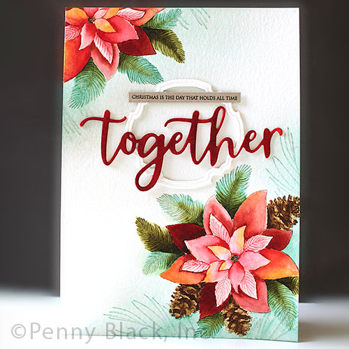 The Penny Black Ruby Cling Stamp is a 3.5 x 3.5 inch cling stamp showcasing a beautiful poinsettia in full bloom, resting atop pine branches and pine cones. This elegant design is perfect for adding a festive and traditional touch to your holiday cards and seasonal crafts. The high-quality stamp provides crisp, detailed impressions, making it an excellent choice for creating stunning holiday-themed projects.