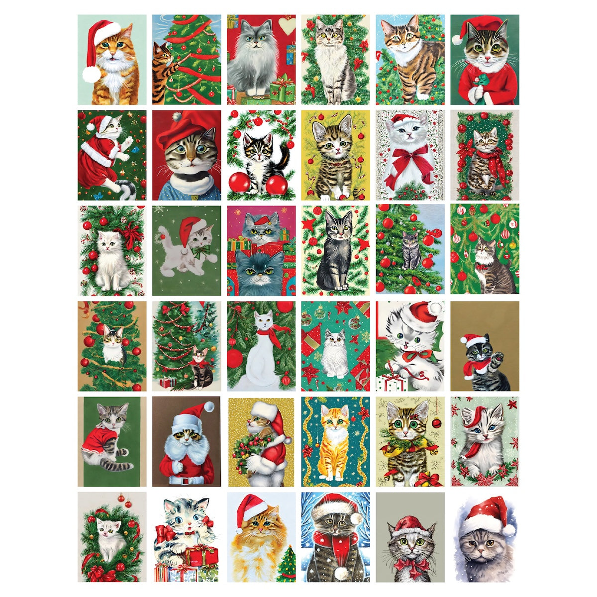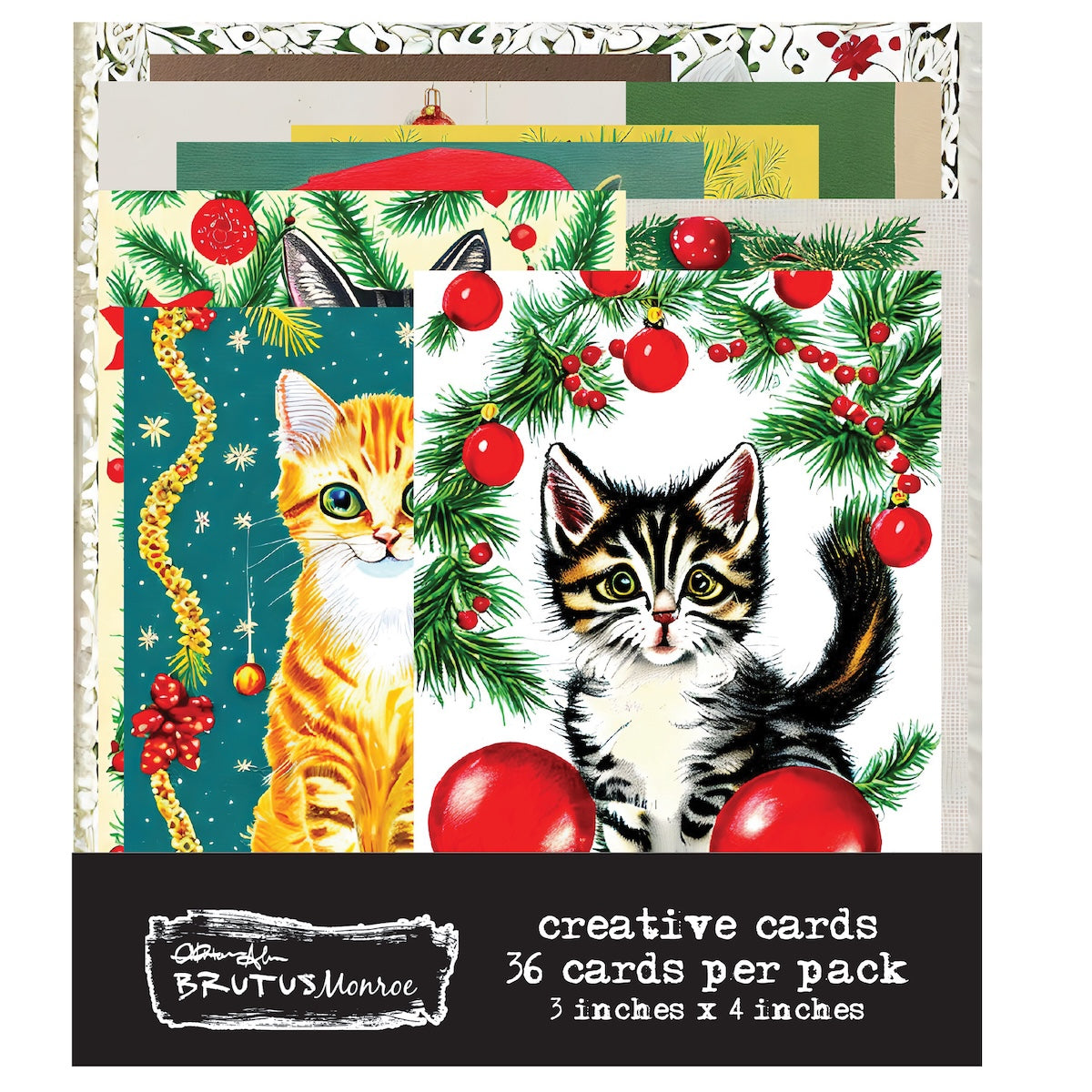 Brutus Monroe Festive Felines Creative Cards, part of the Kitty Christmas Collection, include 36 unique 3 x 4-inch cards featuring colorful Christmas cats in a variety of playful, festive poses—sitting beside decorated trees, dressed in Santa suits and hats, playing with presents, and more. Perfect for adding instant charm and creativity to your holiday cards, journals, scrapbook pages, and seasonal décor. Let these delightful kitties bring joy and personality to all your festive crafts!