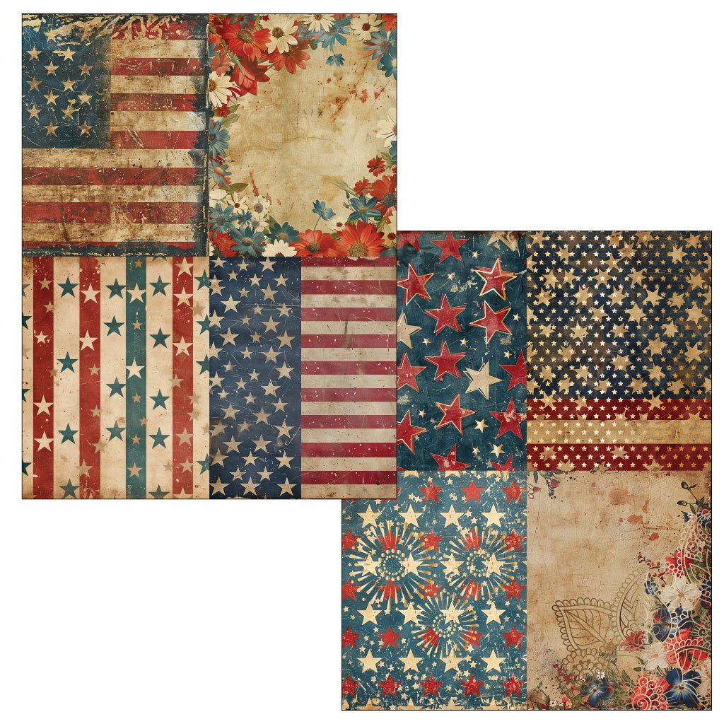 Brutus Monroe Red, White, & Blue DuoFoil Sheets, part of the Stars and Stripes Collection, bring a bold patriotic flair to your creative projects. These DuoFoil Sheets feature a colored card base with a black design overlay that can be hot foiled using a Minc, Fuse, or laminator. Each 8.5 x 11-inch sheet showcases classic American imagery, including the American flag, stars, stripes, fireworks, and flowers—perfect for adding sparkling accents to cards, scrapbook pages, journals, and mixed media creations with a festive red, white, and blue theme.