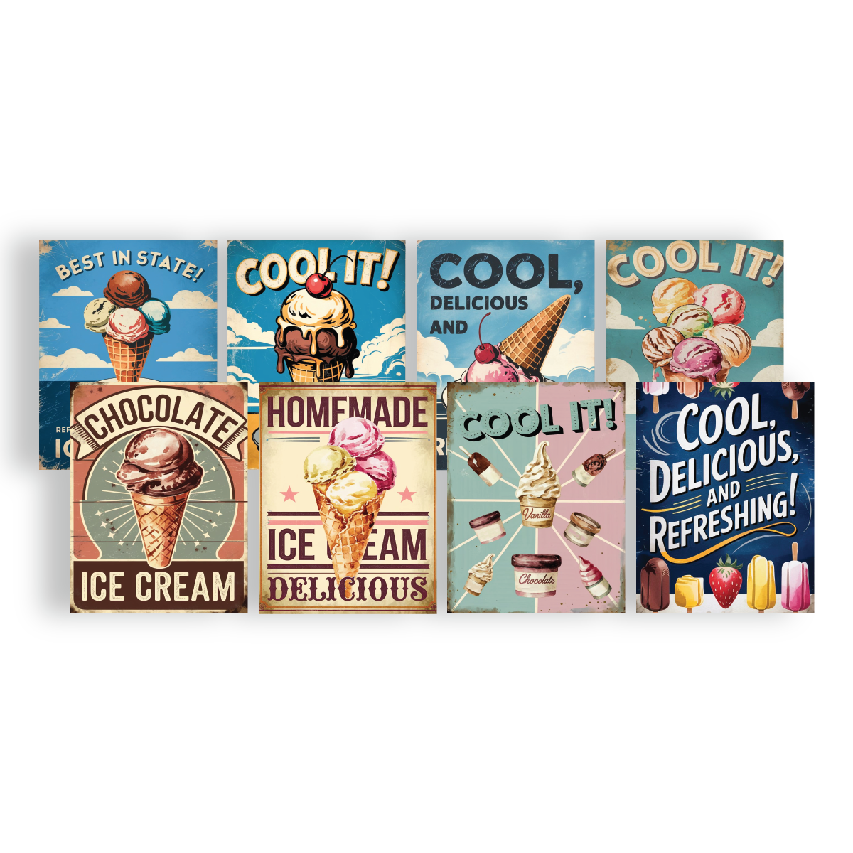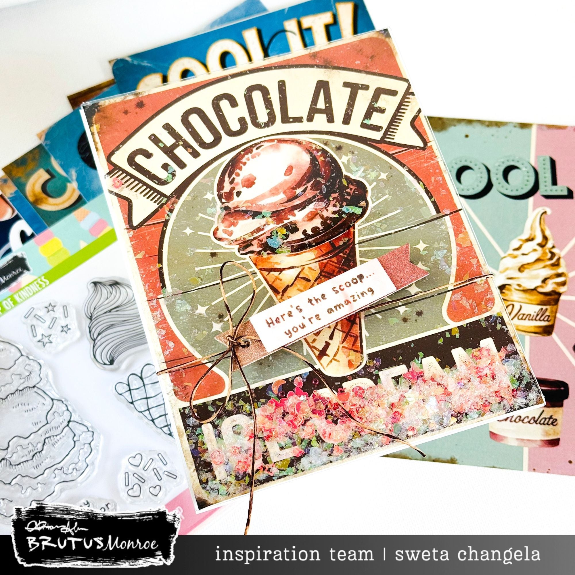 Brutus Monroe Timeless Treats Card Panels are part of the Frozen Delights Collection. This set includes 8 pre-printed A2 panels, each featuring nostalgic frozen treat designs with playful retro sayings such as “Cool It,” “Best in State,” “Homemade Delicious,” “Cool,” “Delicious,” and “Refreshing.” Add your own splash of color with markers, inks, or paints, or enhance them with foil accents for a fun, vintage-inspired look.