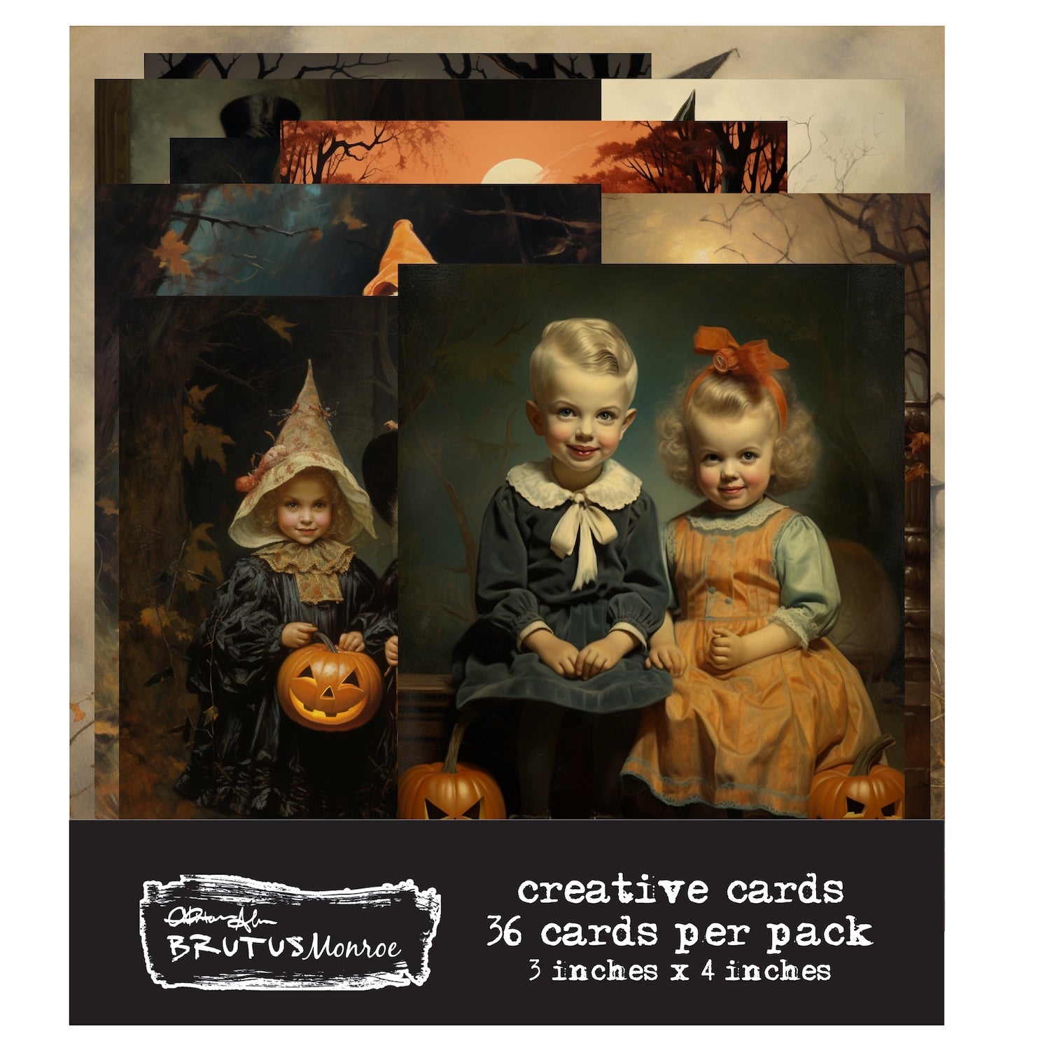 Brutus Monroe Tiny Terror Creative Cards, part of the Monroe Manor Collection, are perfect for adding a creepy vintage feel to your papercrafting projects. This set includes 36 vintage-style 3 x 4-inch cards featuring Halloween imagery such as children with jack-o’-lanterns, posed portraits in costume, witches, haunted houses, spooky trees, parties, and more. Ideal for layering on cards, scrapbook pages, journals, and mixed media creations, these cards bring nostalgic Halloween charm with just the right touch of eerie.