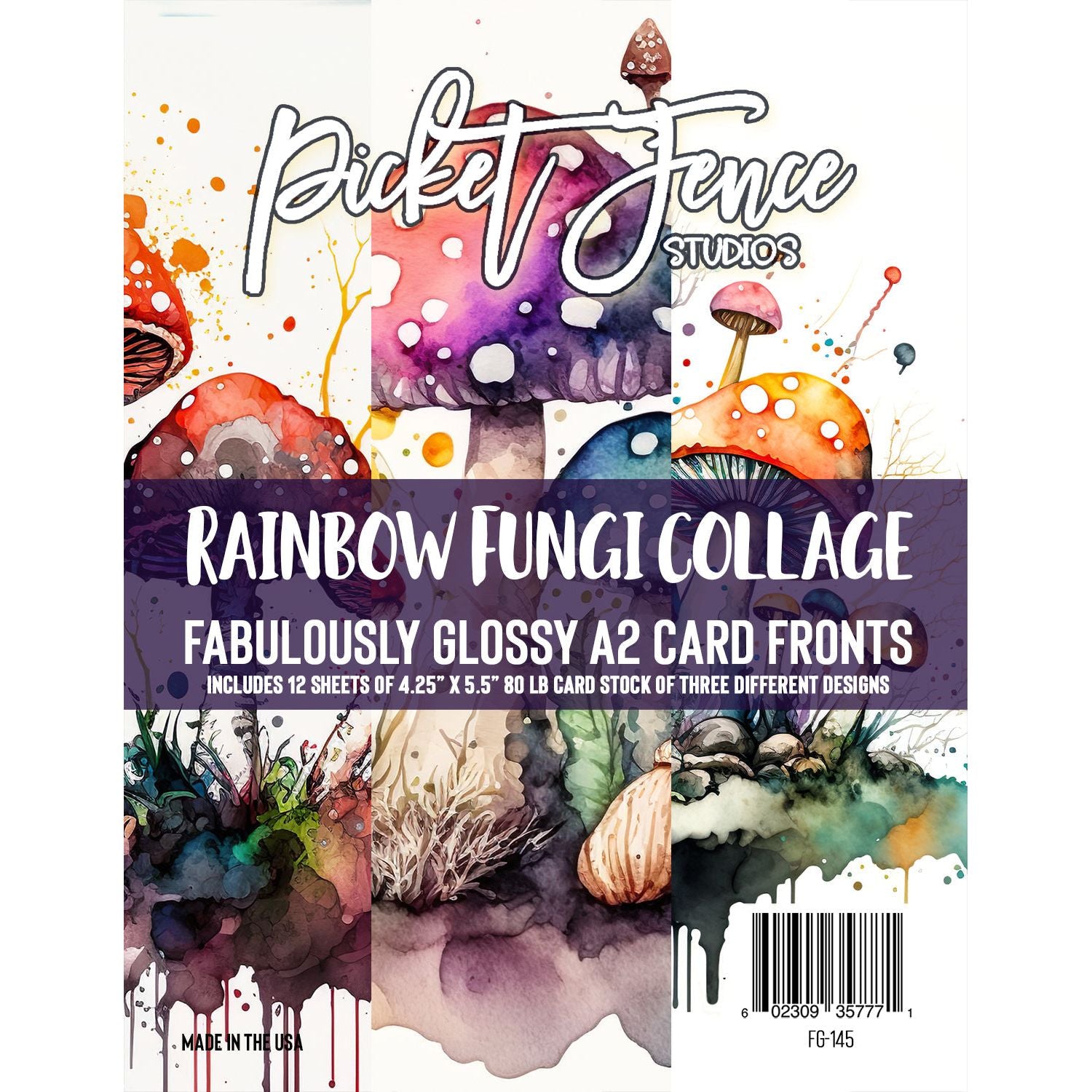 Picket Fence Studios Fabulously Glossy A2 Card Fronts Rainbow Fungi Collage is a fantastic addition to your crafting supplies. Each pack includes 12 card fronts, each measuring 4.25 x 5.5 inches, with four of each of the three delightful designs. Made from 90lb paper, these card fronts feature a semi-gloss finish and feature bright and colorful mushrooms, with watercolor and dripping paint. You can easily use them as patterned paper to create beautiful backgrounds that enhance the overall appeal of your cards.