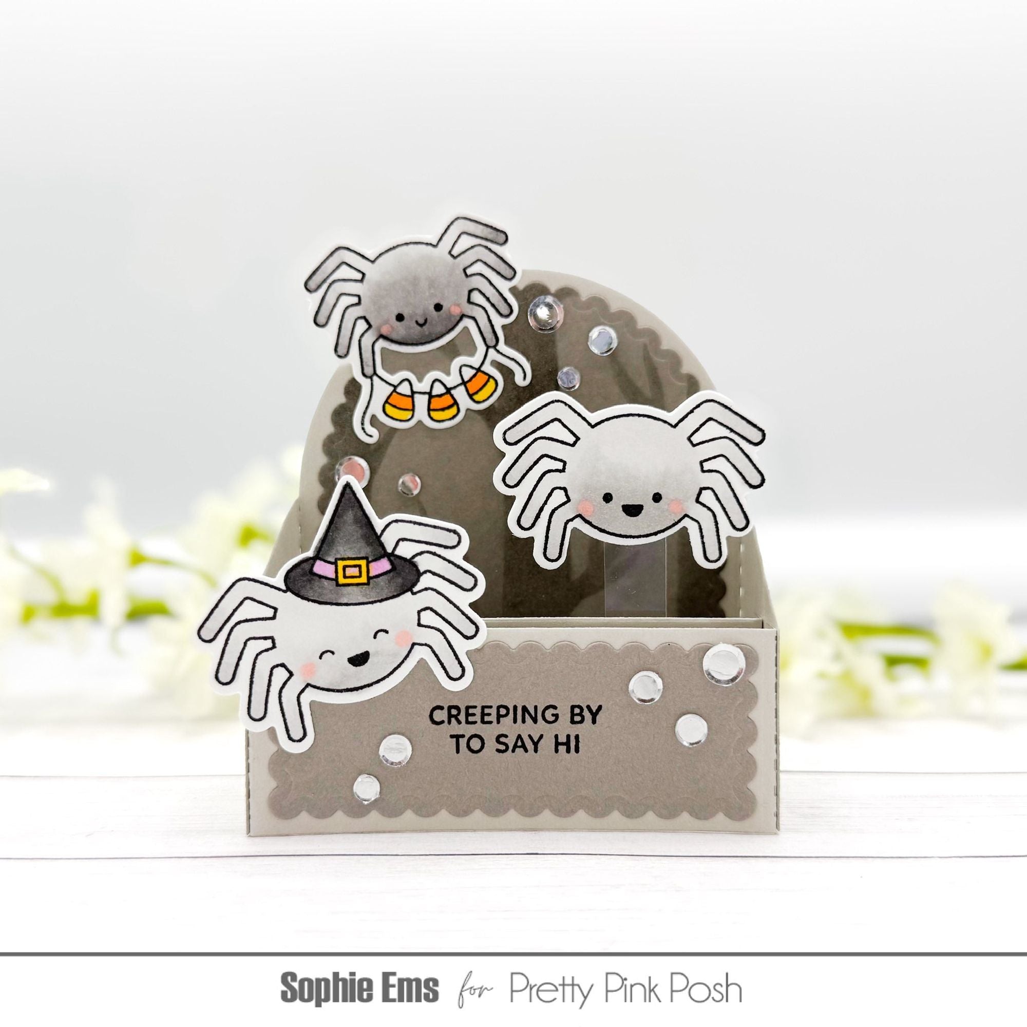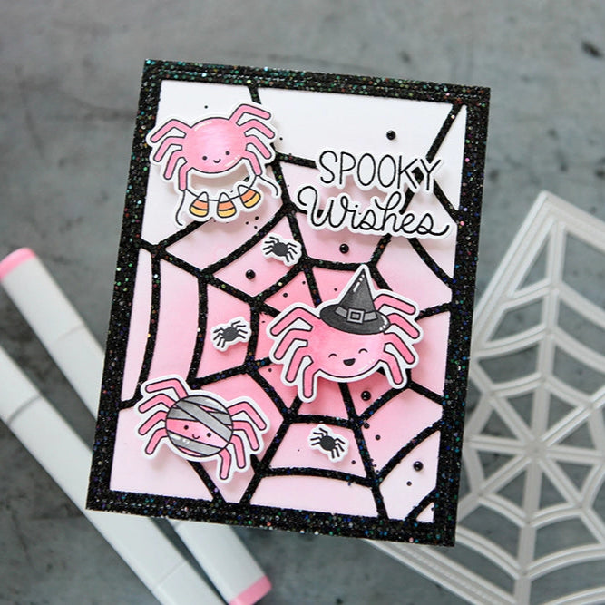 Pretty Pink Posh Spider Friends Dies coordinate with the Spider Friends Clear Stamps, sold separately. This set includes 14 outline dies to cut the stamped images with precision. Compatible with most leading die cutting machines.