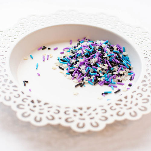 Enhance your craft projects with the Pretty Pink Posh Starry Galaxy Clay Confetti! This delightful mix features purple, blue, and black sprinkles, accompanied by silver moons and stars, adding a touch of whimsy and flair to your creations.