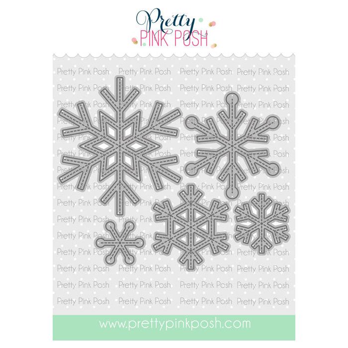 The Pretty Pink Posh Stitched Snowflakes Dies set includes 5 different sizes of stitched snowflakes. This high-quality steel craft die set is perfect for scrapbooking, paper crafts, and more.