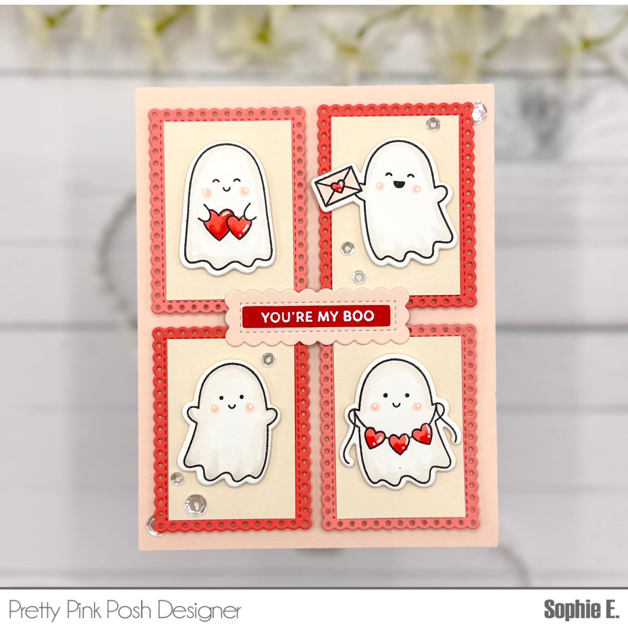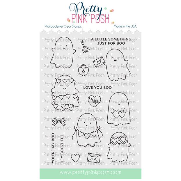 The Pretty Pink Posh Valentine Ghost Friends Clear Stamps is a delightful 4 x 6 inch stamp set featuring 16 designs, including 6 adorable, happy ghosts ready to celebrate Valentine's Day. The set also includes 4 loving sentiments and fun accessory stamps to add charm and creativity to your projects.