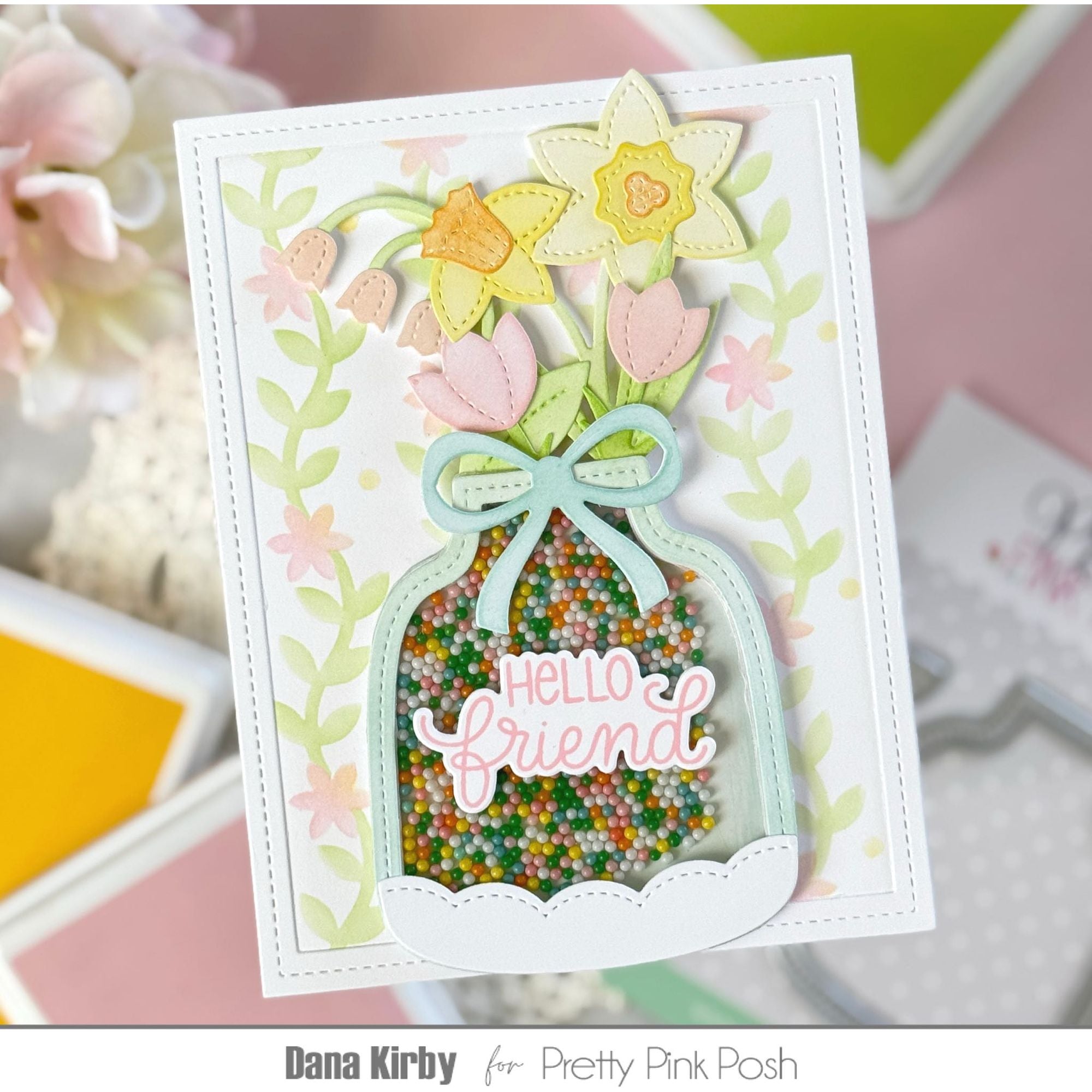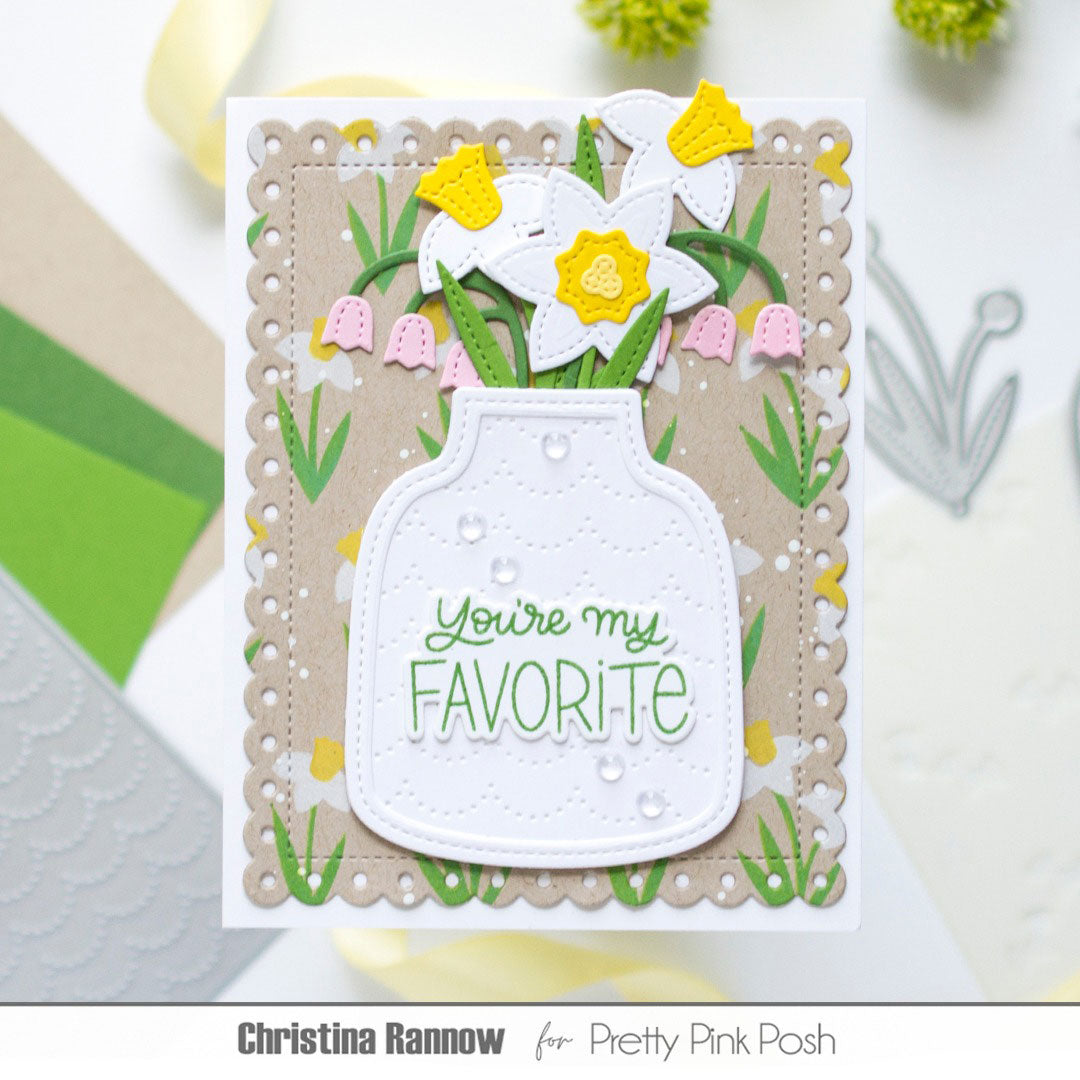Pretty Pink Posh Vase Shaker Dies is a high-quality steel die set designed for scrapbooking, cardmaking, and other paper crafts. It includes a stitched outline vase shape and a scalloped base for added detail. The vase measures approximately 2.56 x 3.13 inches. Compatible with most die-cutting machines.