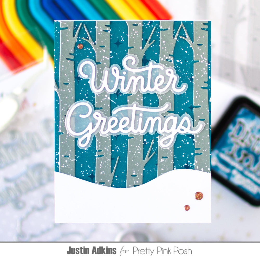 Pretty Pink Posh Winter Greetings Shadow Dies is a set of four high-quality steel dies, including two script word dies and two coordinating shadow layers. Perfect for adding dimension and elegance to your winter-themed cards, scrapbook pages, and paper crafts.