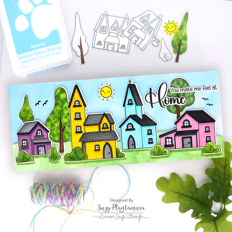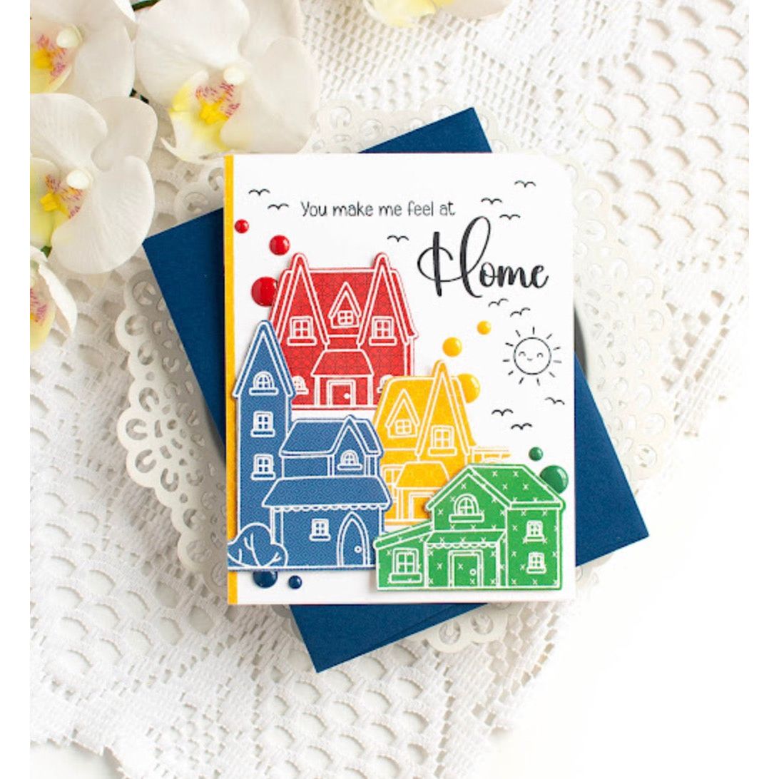 The Simon Says Stamp No Place Like Home dies are the perfect companion to the No Place Like Home stamp set, making it easy to add depth and dimension to your neighborhood scenes. This set includes coordinating dies to cut out the charming images, from the cozy houses and quaint church to the trees, bushes, and sun. It also includes dies for the beautifully scripted "Home" sentiment and its accompanying sub-sentiments, allowing you to create polished, professional designs.