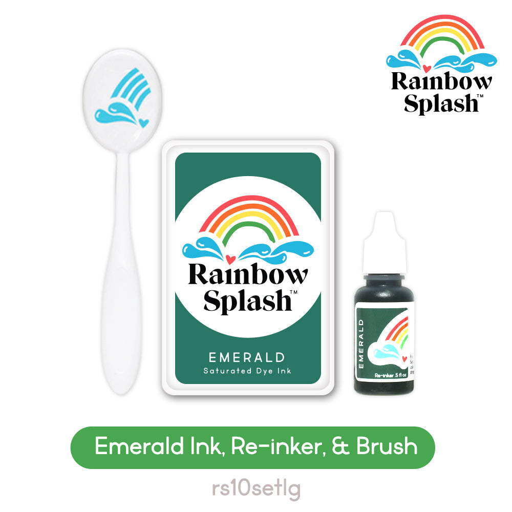 Elevate your crafting with the Rainbow Splash Emerald Ink, Re-inker, and Large Brush set—an essential addition to your creative toolkit. The raised surface of the ink pad accommodates stamps of any size, ensuring precise and efficient application. With convenient color labels on the side of each Rainbow Splash ink pad, finding the perfect shade is a breeze. The durable foam pad ensures optimal ink transfer for your projects, while the ink itself remains acid-free and fade-resistant for lasting results.