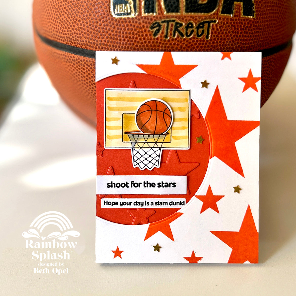 Dies cut out all the stamped images. Whether used on cards, scrapbook pages, or party décor, the Rainbow Splash Basketball set is a slam dunk for your creative lineup. Rainbow Splash products are available exclusively from Simon Says Stamp.