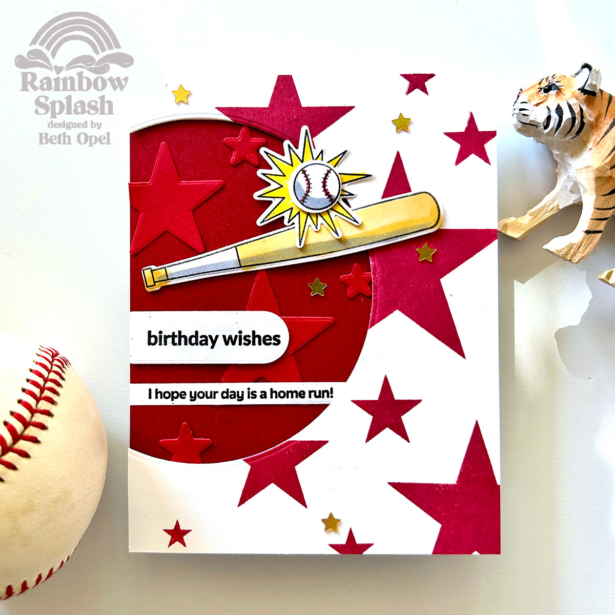 Dies cut out all of the stamped images, and the included stencil allows you to add color to them. Whether you’re crafting cards for team spirit, scrapbook layouts of ballpark memories, or party décor for a little slugger, the Rainbow Splash Baseball bundle delivers all-star creativity. Rainbow Splash products are available exclusively from Simon Says Stamp.