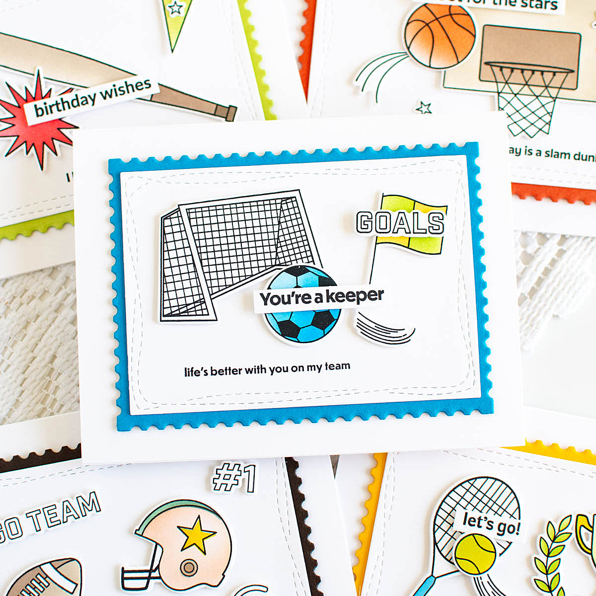 To complement the images, the set also features a standout “GOALS” sentiment in a sporty block font, along with three additional greetings perfect for encouragement, celebration, or everyday fun: