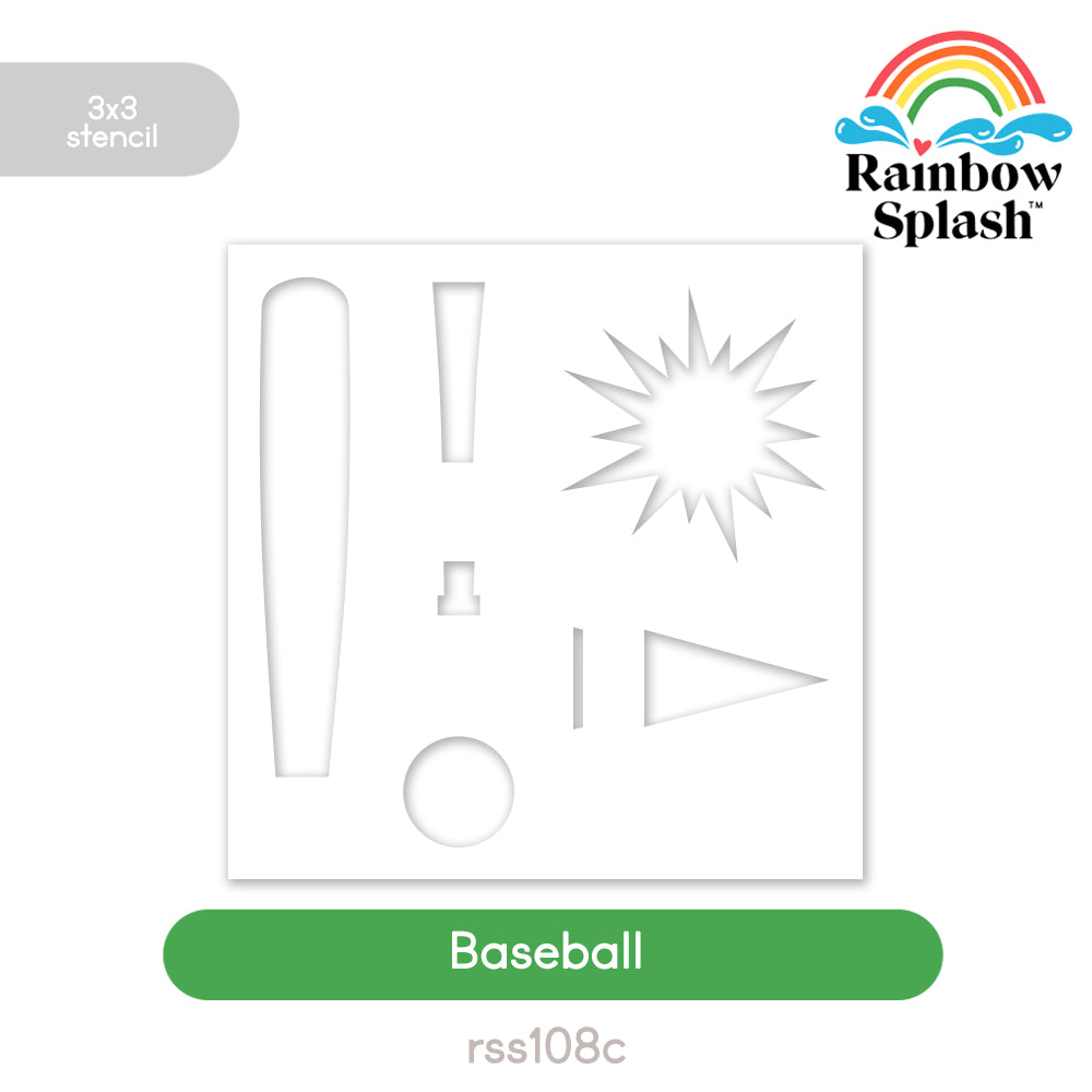 The Rainbow Splash Baseball stencil is the perfect companion to the Rainbow Splash Baseball stamp set, giving you an easy way to add bold color and detail to the sporty images. This stencil aligns with the bat, baseball, pennant, and "pow"-style burst, allowing you to ink, blend, or add texture without the need for intricate coloring.