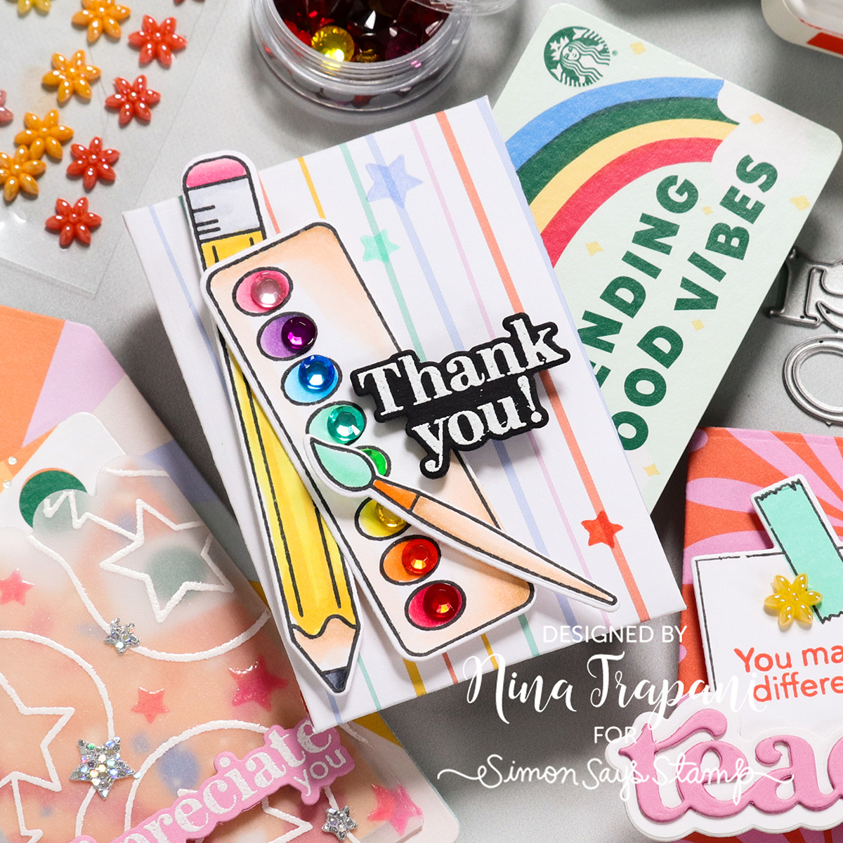 Introducing the Rainbow Splash Schoolhouse Messages dies. These dies offer a simple and accessible way to create school-themed designs. The dies cut out the crayon, pencil, ruler, paint set, paintbrush, and grading images of the Schoolhouse Messages stamp set, making school-themed crafting easy and enjoyable. Whether you're a beginner or an experienced crafter, the Schoolhouse Messages dies allow you to add a touch of creativity and learning to your projects. Create charming educational designs with confidence using the Simon Says Stamp Schoolhouse Messages dies.