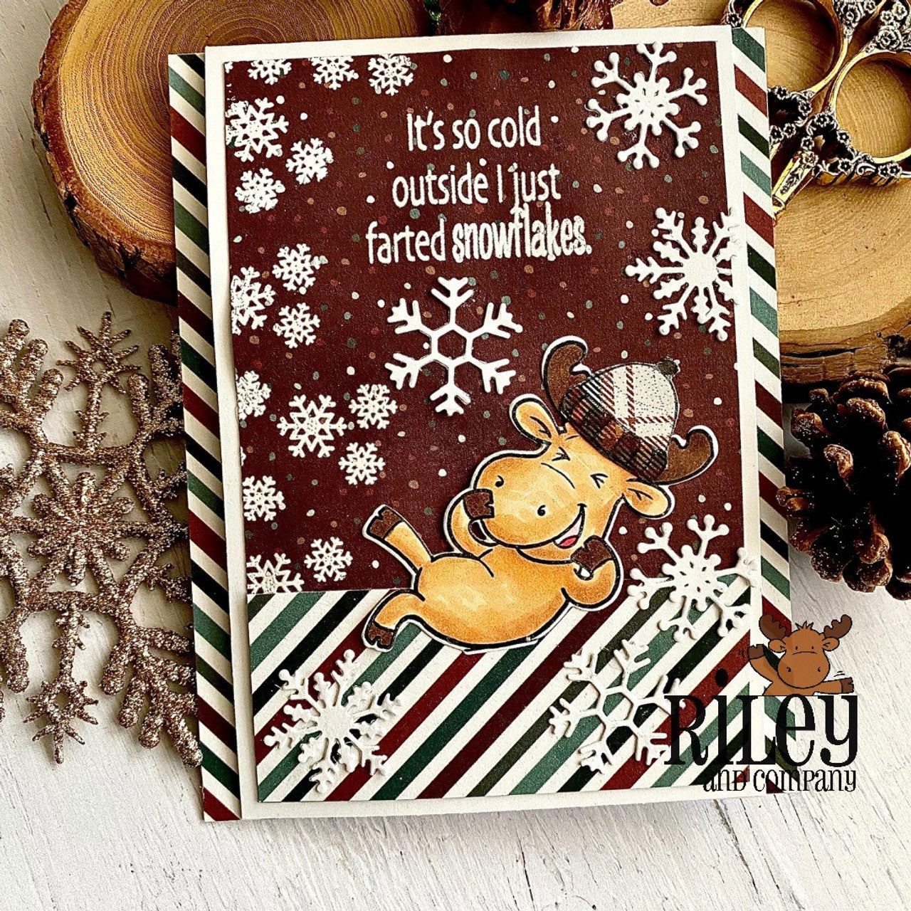 The Riley and Company Funny Bones It's So Cold Outside Clear Stamp is part of the Funny Bones collection, known for its snarky humor. These stamps are ideal for adding humor and fun to your cards and projects, especially when the weather is chilly.