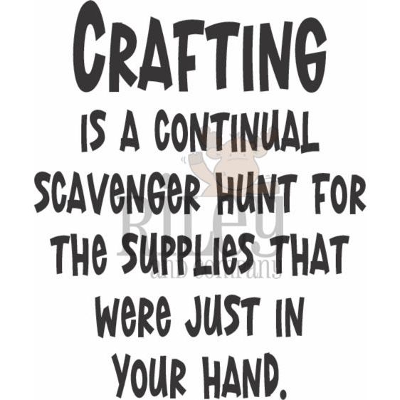 Sentiment reads: Crafting is a continual scavenger hunt for the supplies that were just in your hand.