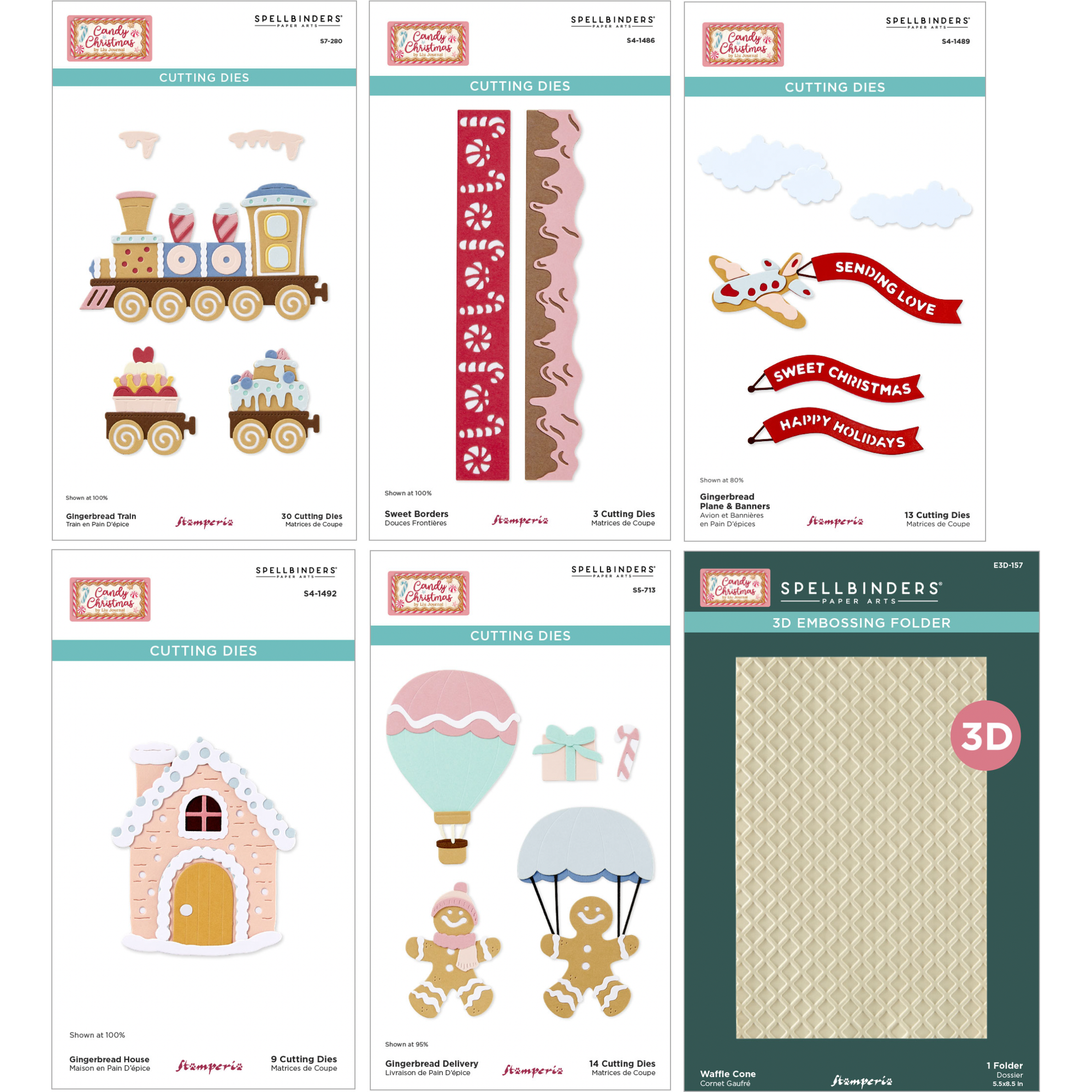 The Spellbinders Candy Christmas by Stamperia Die and Folder Bundle includes five die sets and one embossing folder from the Candy Christmas Collection.
