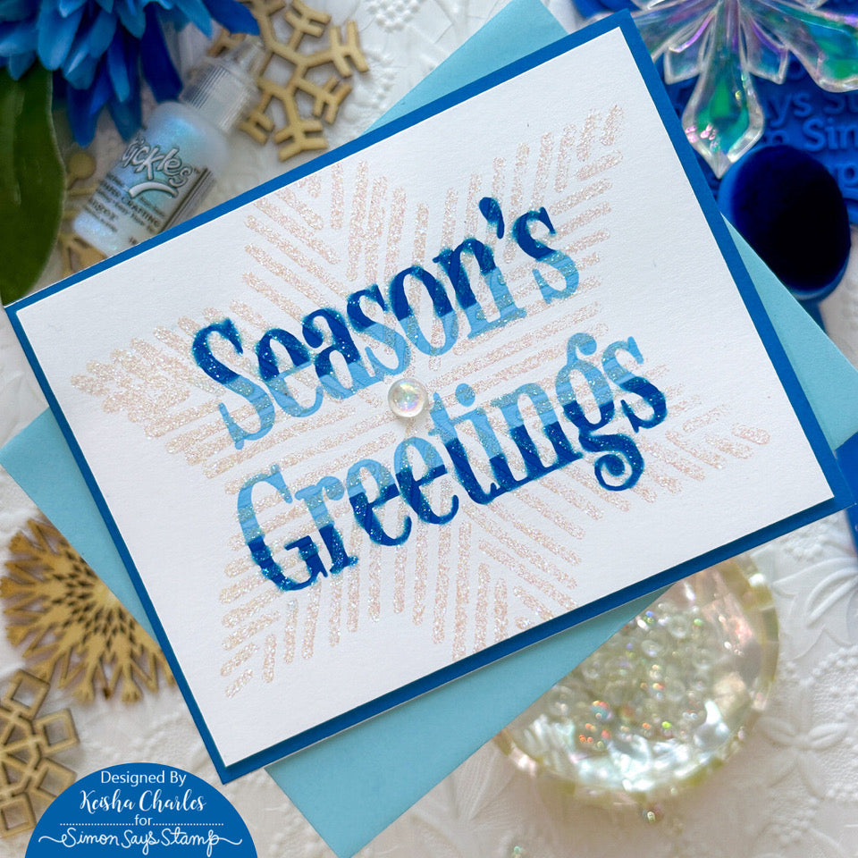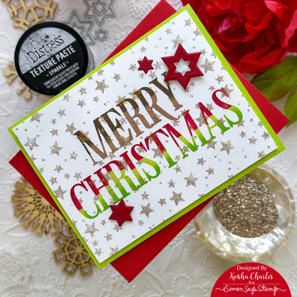 The Simon Says Stamp Just My Type Christmas stencils and dies are a must-have for your holiday crafting endeavors. This set of four layering stencils opens up a world of creative possibilities, allowing you to colorize the sentiments of Season's Greetings and Merry Christmas in intriguing and captivating combinations.