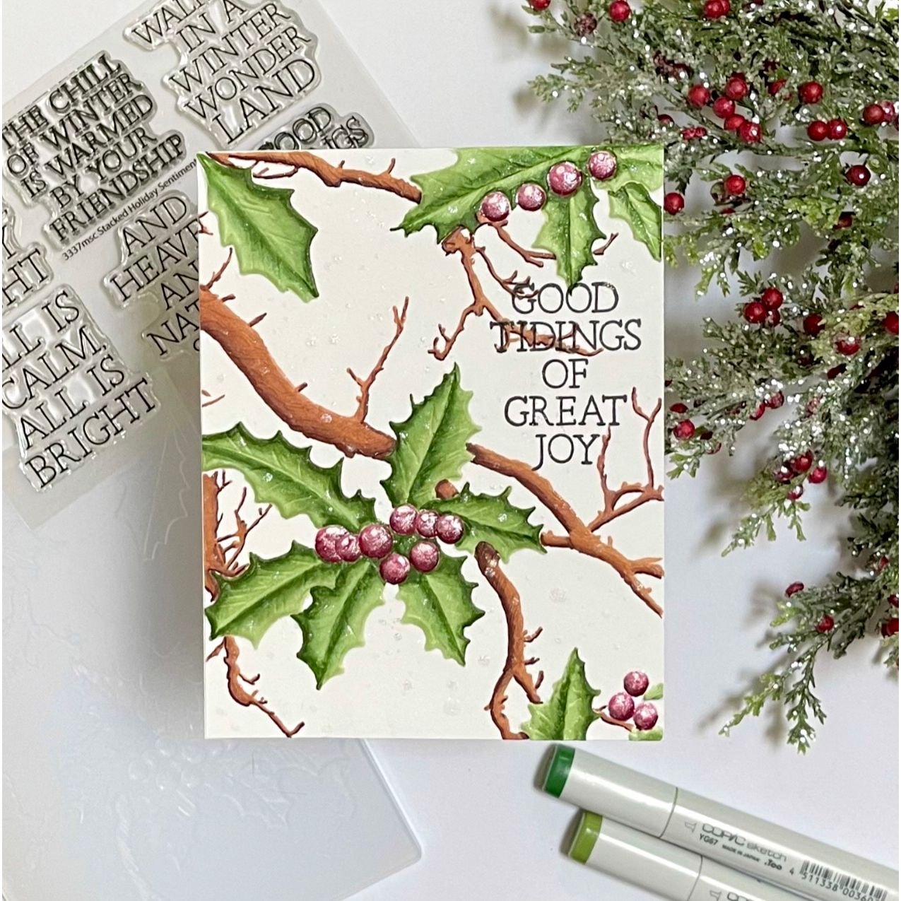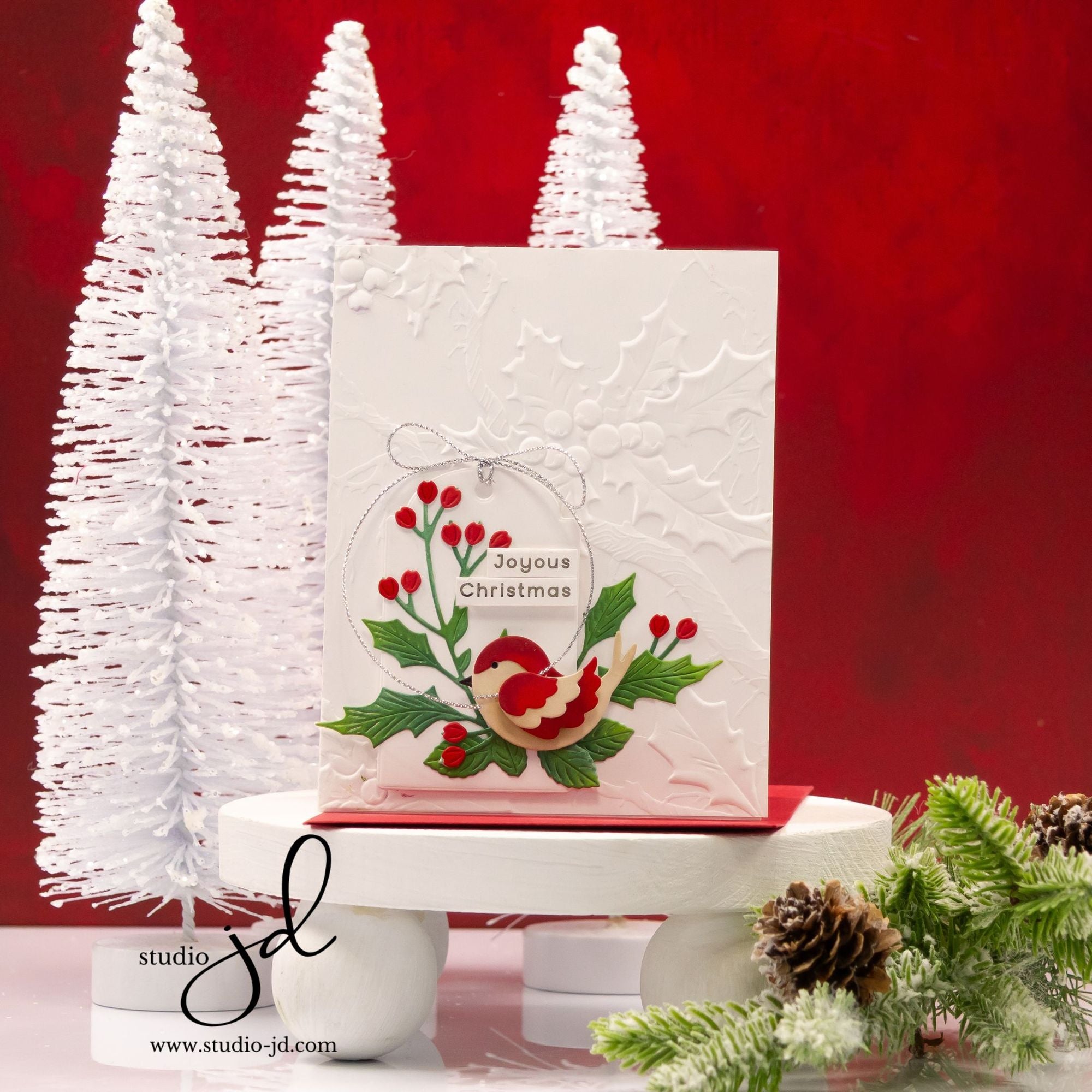 Bring natural texture and festive elegance to your projects with the Simon Says Stamp Branching Holly embossing folder. This detailed folder impresses an A2 panel featuring gnarly, twisting branches adorned with clusters of holly leaves and berries.