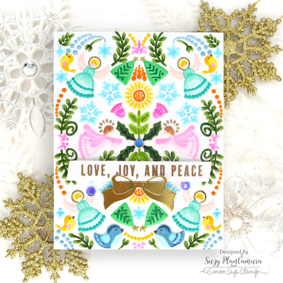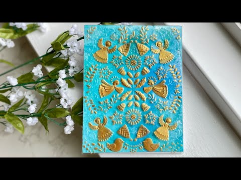 Celebrate the beauty of the season with the Simon Says Stamp Christmas Angels embossing folder. This enchanting design impresses an A2 background panel filled with a folk art–inspired pattern of angels, birds, branches, snowflakes, trees, and other festive motifs arranged in a charming symmetrical layout.
