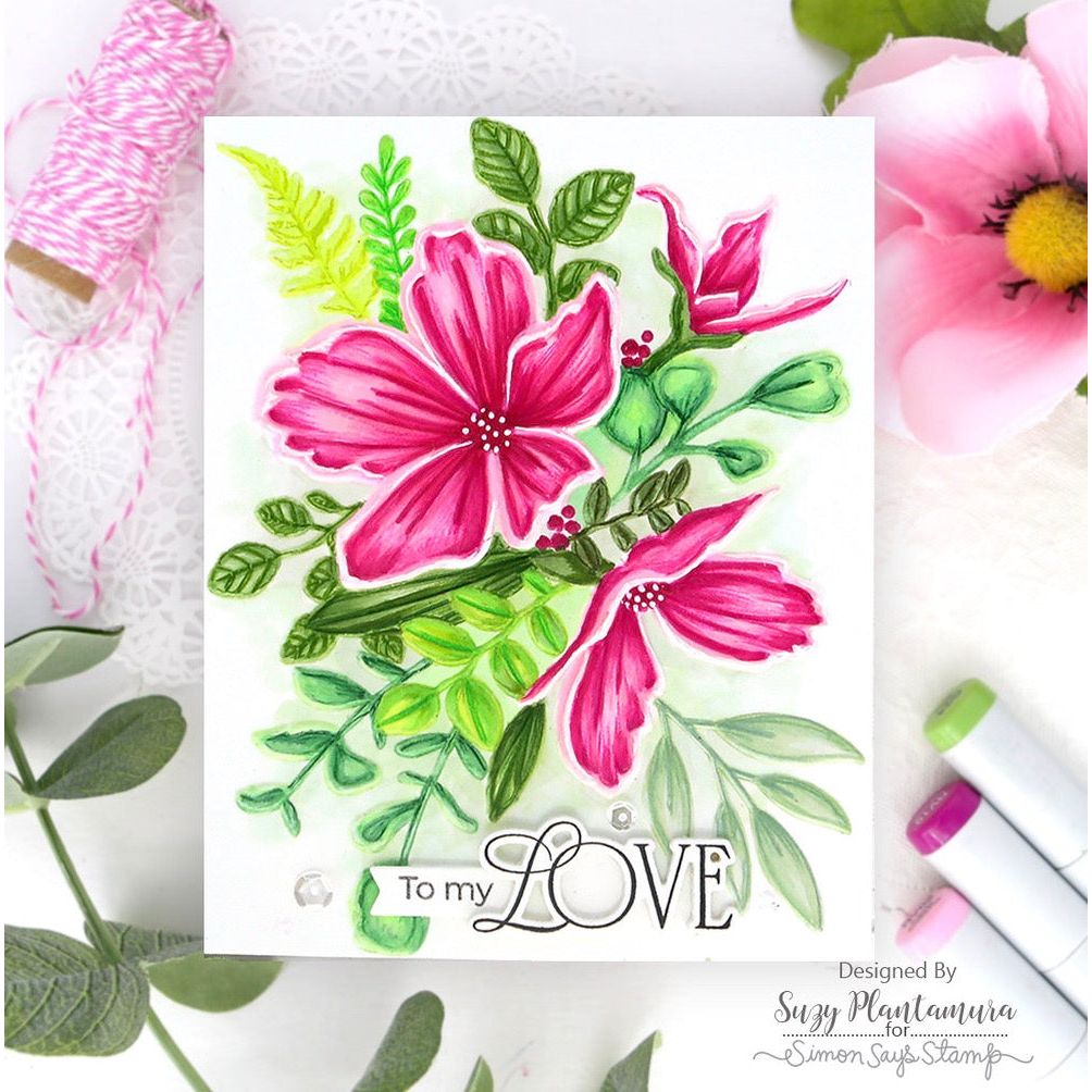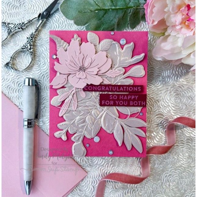 The Simon Says Stamp Delicate Blooms embossing folder creates a striking impression of a large cluster of flowers and leaves centered on the panel.