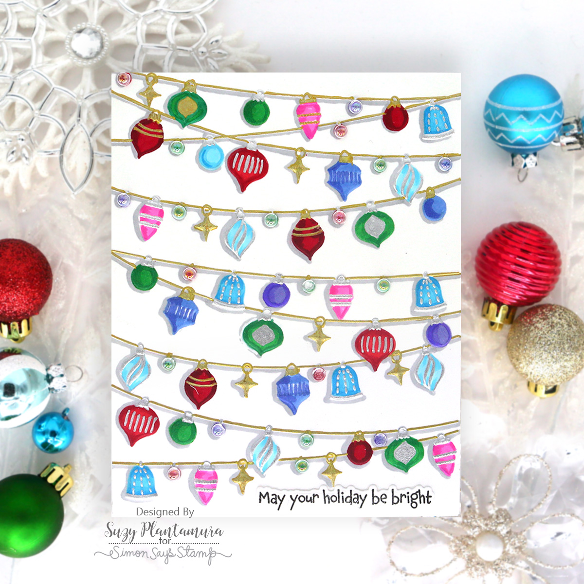 The Simon Says Stamp Heirloom Ornaments embossing folder adds festive elegance to your holiday crafting. This detailed design impresses a background of classic ornament shapes strung together on crisscrossing lines, creating a rich and decorative pattern.