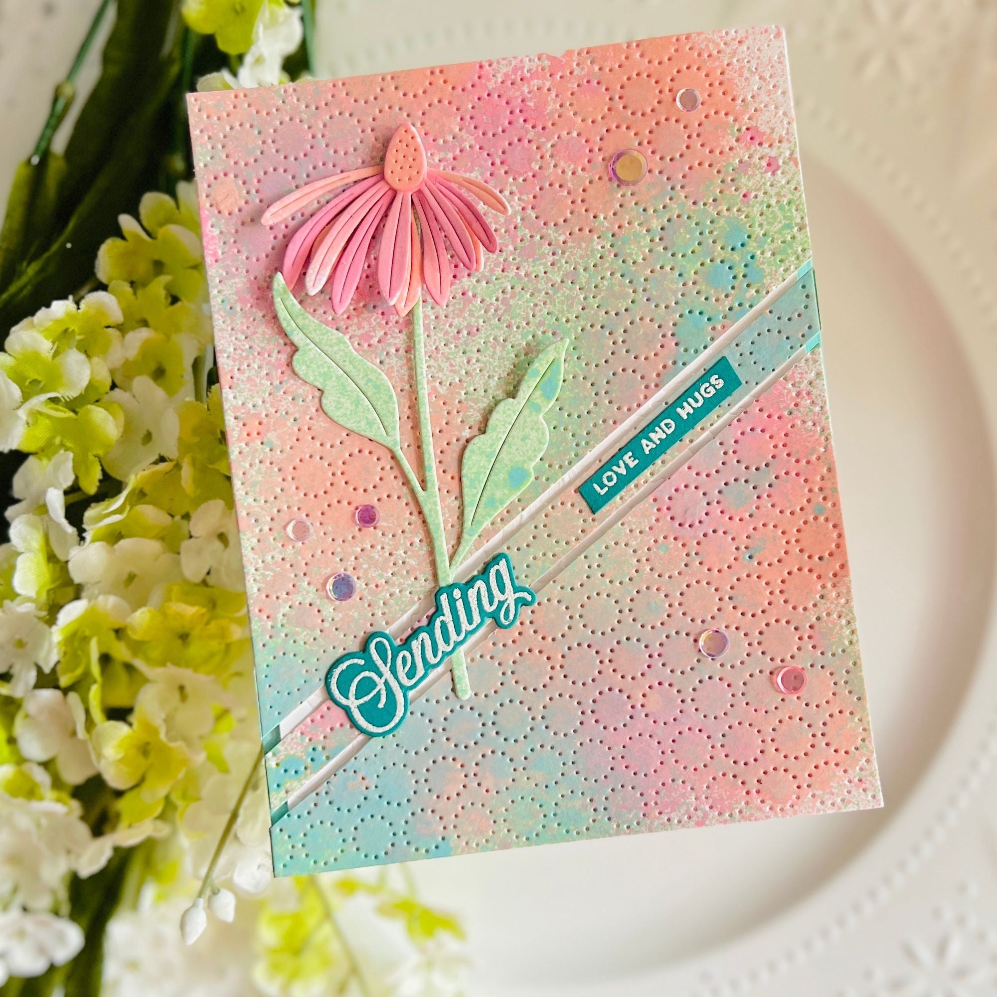 Add subtle texture to your projects with the Simon Says Stamp Pinpoint Circle Background die. This versatile die cuts an A2 card-sized panel featuring small dotted circles arranged in rows across the entire background.