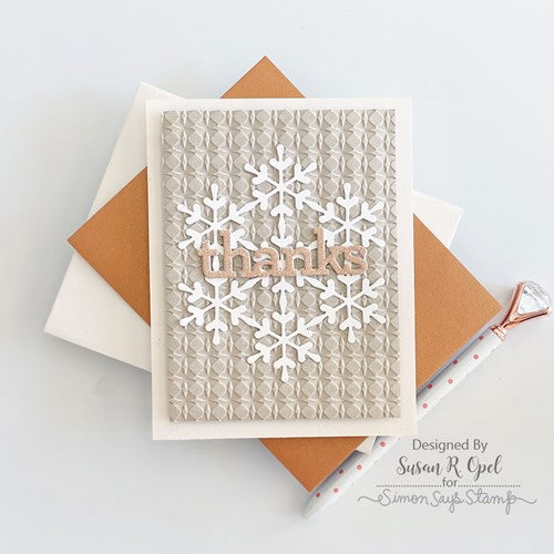 Seven happy snowflakes combine to create this impressive large medallion! Simon Says Stamp dies are made of 100% durable steel and usable in nearly every machine on the market. Use wafer dies on cardstock, felt, fabric, even shrink plastic! You can use wafer thin dies to cut, stencil, emboss and create!