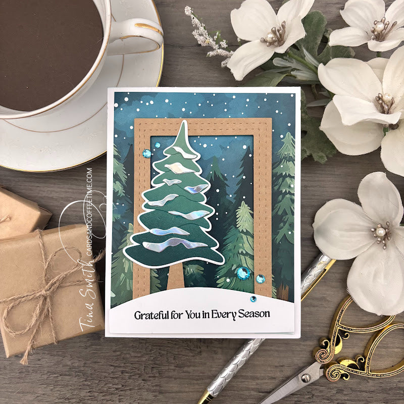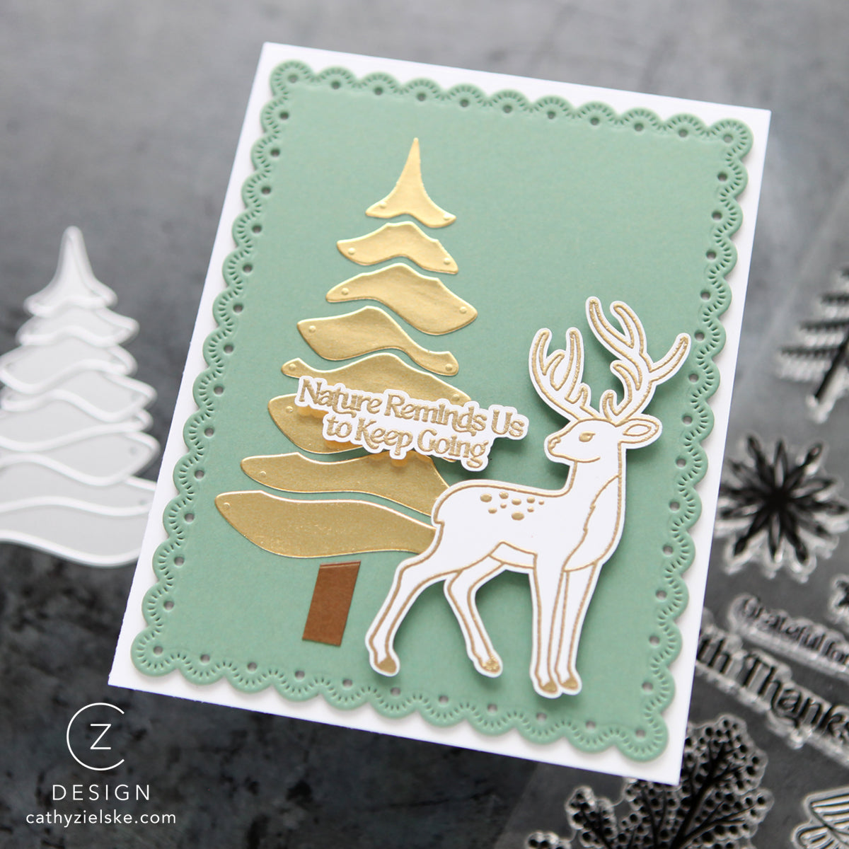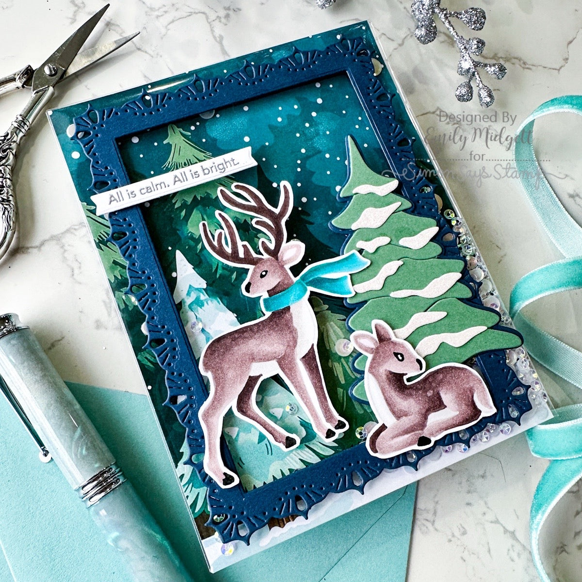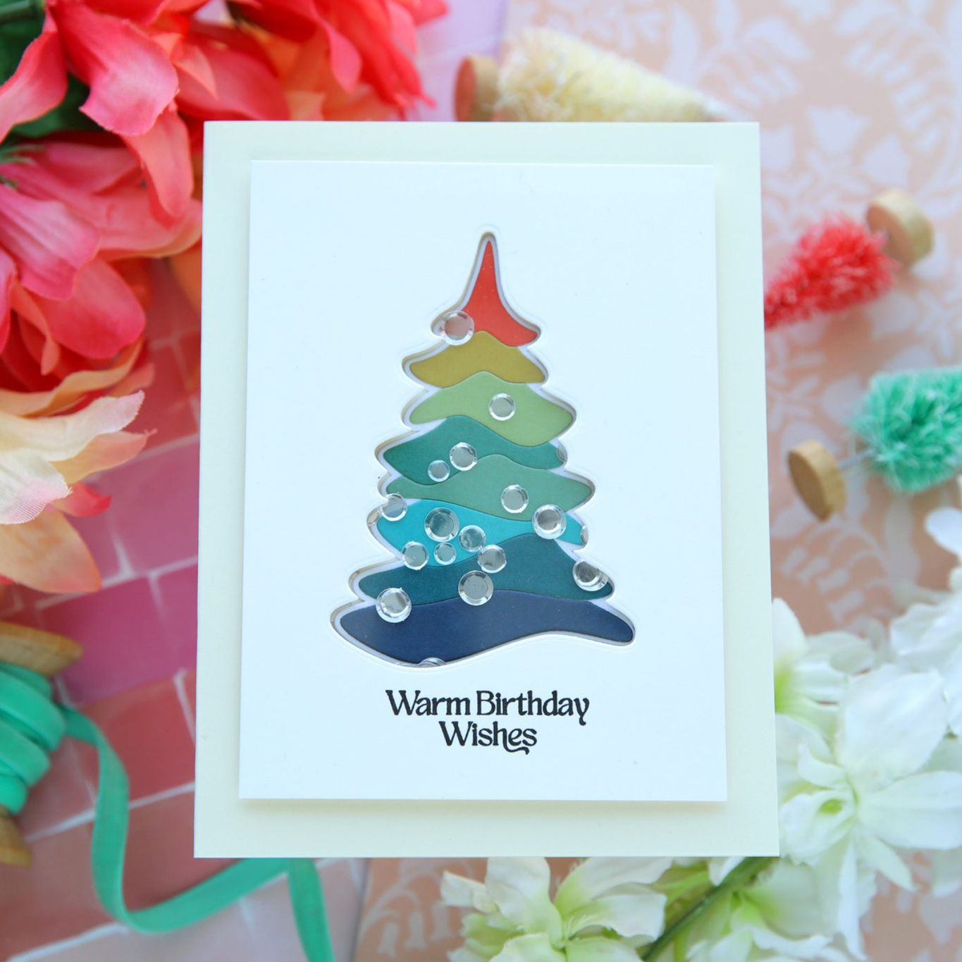 Simon Says Stamp Snowy Tree dies let you build a beautifully layered evergreen with winter charm and clean dimension. This set includes an outline die that cuts the full tree shape, an inner layering piece with embossed branch lines for added detail, and a separate die that creates snowy clumps to rest on the branches.