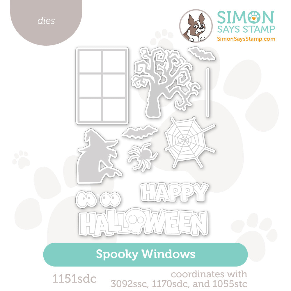 Elevate your Halloween crafting with the Simon Says Stamp Spooky Windows dies! This set is designed to perfectly cut out all the eerie silhouettes from the Spooky Windows stamp set, including the witch, gnarled tree, bats, spider web, spider, and peeping eyeballs.