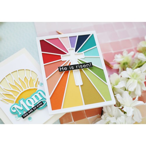 This die set measures approximately 4.25 x 5 inches and coordinates with the Stained Glass Cross stencil set (ssst221618c).