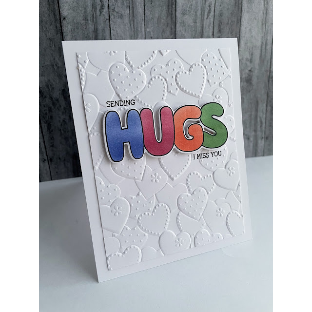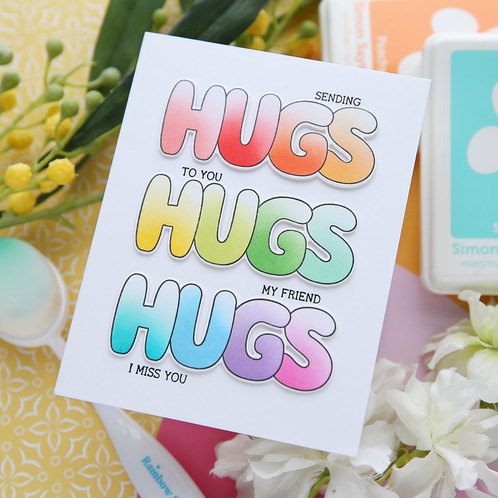 Simplify the coloring of your stamped images with the Simon Says Stamp Hugs to You stencil and masks. Start with the coordinating stamp set, and use inks, sprays, or paste to colorize the puffy "Hugs to You" words .