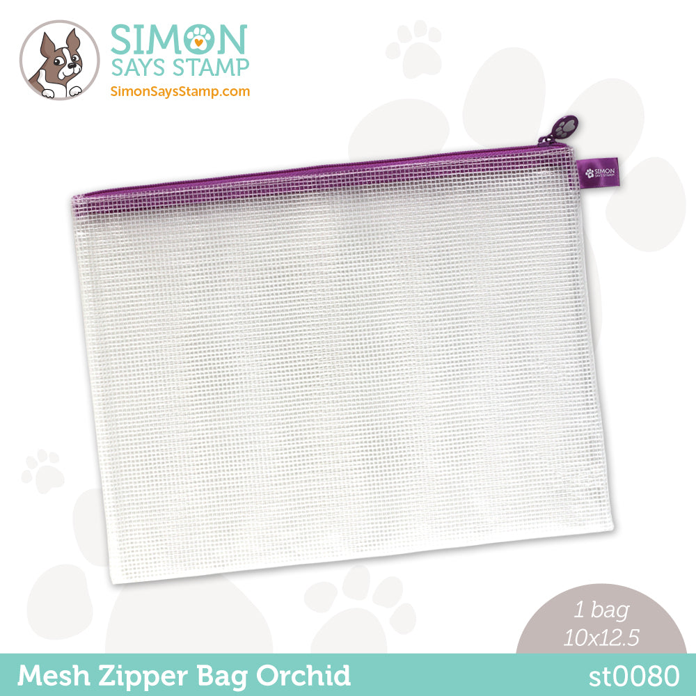 Our Simon Says Stamp Mesh Bags are a pawsitively perfect storage solution for all your crafty supplies! The large 10 x 12.5 inch size allows for full-sized 8.5 x 11 inch paper sheets to fit inside. The flexible makeup of this bag also gives room for bulkier items such as jars or tools. The mesh material has a slick coating, which makes for easy clean-up if you put inky brushes into it. Not just for your craft room, our Mesh Bags are even great for traveling; place your favorite supplies inside and carry them with you for on-the-go crafty time!