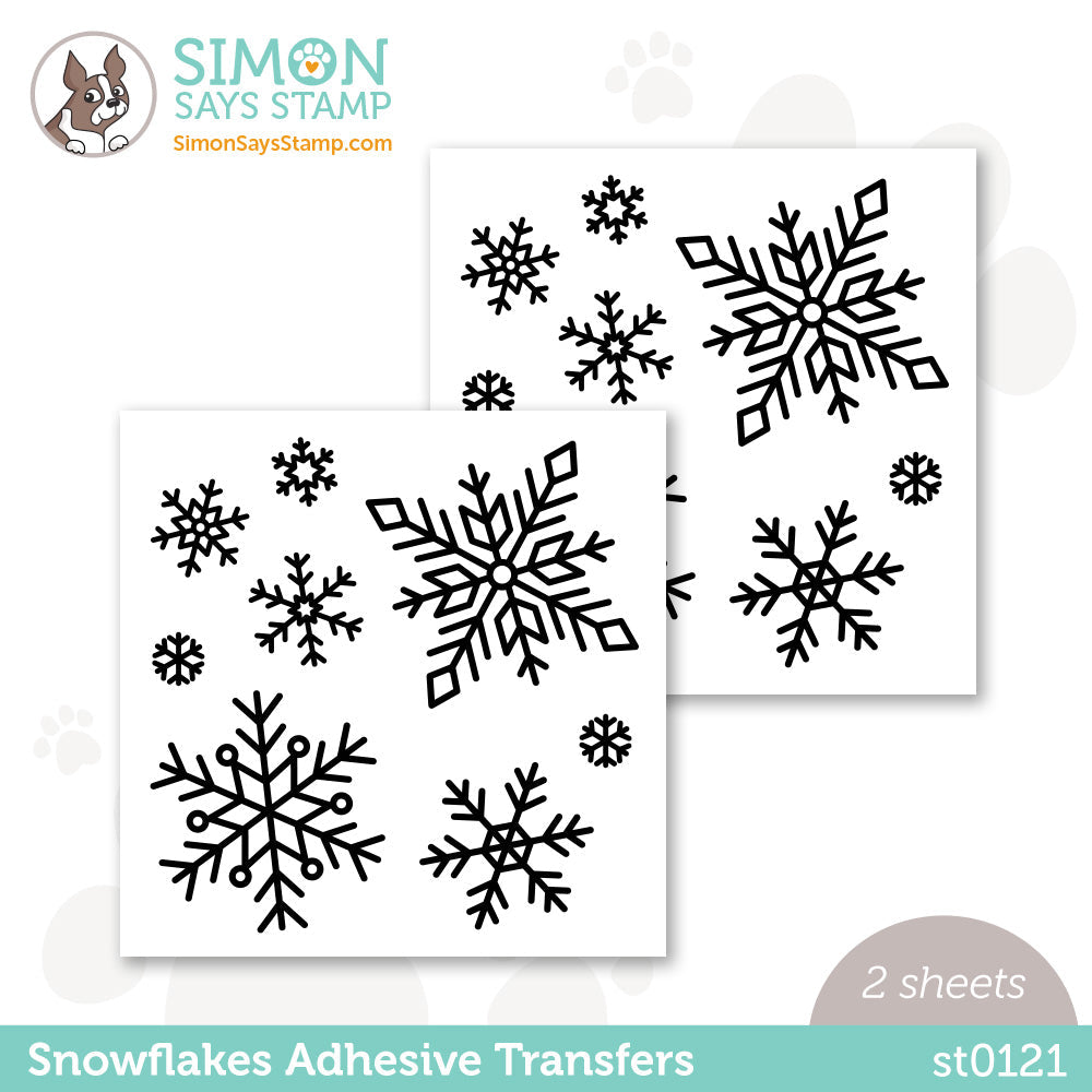 Make your mark with Simon Says Stamp Snowflakes Adhesive Transfers! This Simon Says Stamp exclusive collection of unique snowflakes allow you to add just a touch of modern metallic shine to your projects when used with Deco Foil transfer sheets. Adhesive transfers may also be used with ultra fine glitter and mica powder. Deco Foil Adhesive transfers apply easily to cardstock using a laminator or die-cutting machine. It's time to take your foiling to a whole new level with Adhesive Transfers! Contains two identical sheets that are approximately 5.9 x 5.9 inches each.